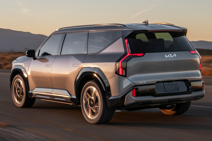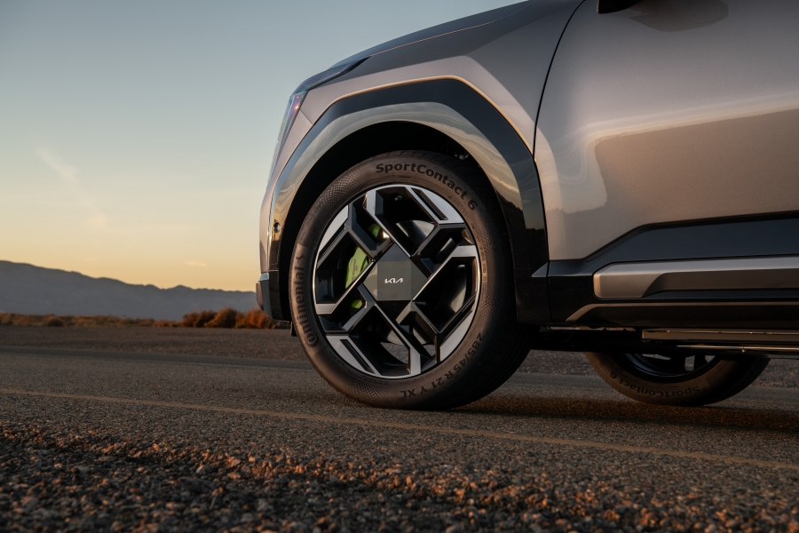 Kia ได้อัพเกรด EV9 GT ด้วยการเปลี่ยนชิ้นส่วนตัวถังภายนอกและเพิ่มชิ้นส่วนตกแต่งสีเขียวอ่อนเข้าไป เพื่อสร้างภาพลักษณ์ที่แตกต่าง โดดเด่นด้วยกระจังหน้าแบบทึบพร้อมไฟตกแต่งชิ้นใหม่ พร้อมกับสเกิร์ตหน้าทรงสปอร์ต ทั้งหมดนี้ถูกออกแบบให้เข้าชุดกันกับล้ออัลลอยขนาด 21 นิ้ว ลายเฉพาะรุ่น รัดด้วยยางจาก ContinentalSportContact 6 ขนาด 285/45 R21 พร้อมคาลิปเปอร์เบรคพ่นสีเขียวอ่อน