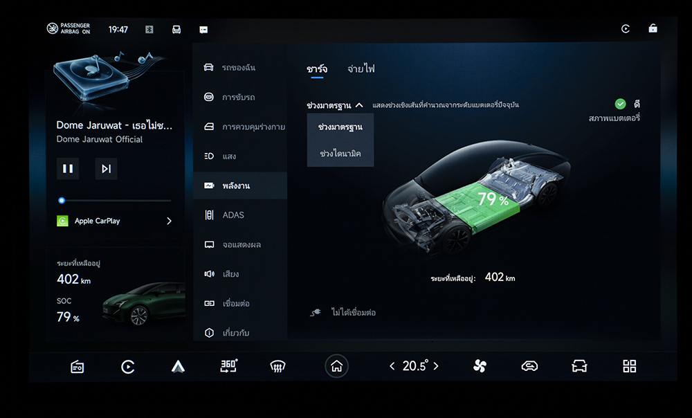- ระยะทางวิ่งสูงสุดต่อการชาร์จเต็ม 1 ครั้ง ทำได้ 520 กิโลเมตร (มาตรฐาน NEDC)