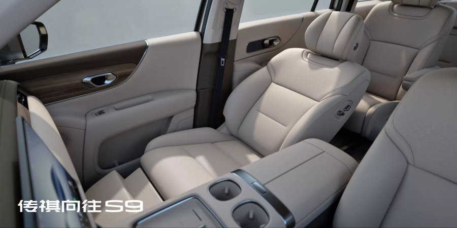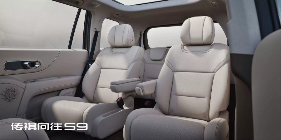 Trumpchi S9 จะวางจำหน่ายเฉพาะรุ่น 6 ที่นั่ง เท่านั้น โดยเบาะแถวที่ 2 จะมีลักษณะพิเศษ ด้วยจอขนาดใหญ่พับเก็บได้จากเพดาน โต๊ะพับขนาดเล็กและจอควบคุมระบบปรับอากาศและเครื่องเสียง เพื่อยกระดับประสบการณ์ผู้โดยสารตอนหลัง เบาะกัปตันซีทในแถวที่สองยังสามารถปรับไฟฟ้าเต็มรูปแบบ เพิ่มความหรูหราขึ้นอีกขั้น