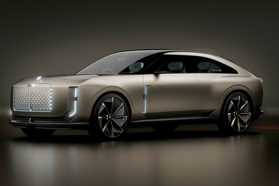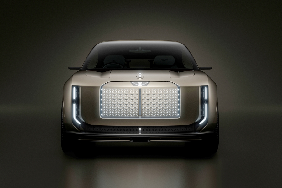 เพราะเป็นรถ EV ที่ไม่จำเป็นต้องมีกระจังหน้าสำหรับระบายความร้อน เบนท์ลีย์จึงเลือกแทนที่ด้วย งานออกแบบลวดลายกราฟิก “digital art” ทดแทนกระจังหน้าแบบดั้งเดิมนอกจากนี้ ด้านหน้ารถยังมีฝากระโปรงหน้ายาวสไตล์ดั้งเดิม แต่ภายใต้ฝากระโปรงที่ไร้เครื่องยนต์นี้ ได้ถูกปรับให้เป็นห้องเก็บสัมภาระ 2 ฝั่ง เปิดจากตรงกลางด้วยบานพับแบบเปิดออกสองด้าน