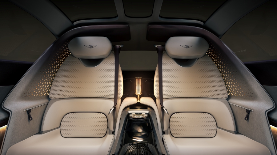 เบาะที่นั่งถูกจัดวางอย่างแปลกตา โดยมีเบาะผู้ขับอยู่ด้านขวา มีที่นั่งสำหรับผู้โดยสารด้านหลังขวา และอีกหนึ่งที่นั่งอยู่ด้านหลังซ้าย ที่โดดเด่นยิ่งกว่าคือในภาพเรนเดอร์ที่ปล่อยออกมา เบนท์ลีย์ยังโชว์ “เตียงสำหรับสุนัข” แบบสั่งทำพิเศษติดตั้งไว้ด้านหน้าของเบาะซ้าย และท้ายรถยังมาพร้อมเก้าอี้ปิกนิกในตัว เสมือนออกแบบมาสำหรับชมกีฬาโปโลอย่างแท้จริง