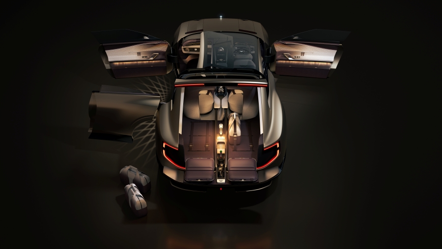 โดยมาพร้อมประตูสามบานและเบาะนั่งสามตำแหน่ง โดยฝั่งผู้ขับมีเบาะแบบสปอร์ตพร้อมเบาะหลังด้านขวา ส่วนฝั่งผู้โดยสารมีประตูแบบ “โค้ชดอร์” เปิดขึ้นพร้อมส่วนหลังคา เพื่อการขึ้น-ลงรถที่หรูหราและสะดวกสบาย ที่นั่งฝั่งซ้ายสามารถหมุนออกได้ 45 องศา และสามารถปรับได้หลายโหมด ได้แก่ “Co-pilot” “Standard” และ “Relax”