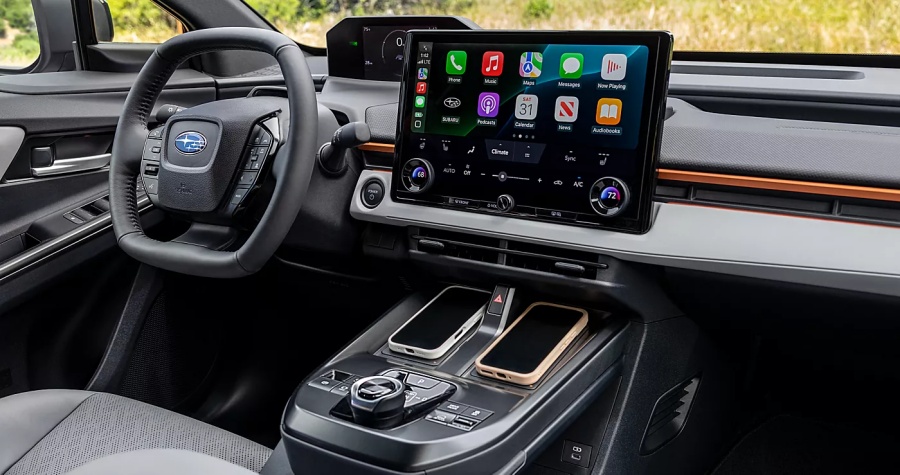 ภายในห้องโดยสาร Uncharted ติดตั้งหน้าจอสัมผัสกลางขนาดใหญ่ 14 นิ้ว รองรับ Apple CarPlay® และ Android Auto แบบไร้สาย พร้อมแท่นชาร์จสมาร์ตโฟนไร้สายคู่บริเวณคอนโซลหน้าและช่อง USB-C สำหรับผู้โดยสารด้านหลัง เน้นความโปร่งโล่ง เสริมด้วยเส้นสายสีส้มสะดุดตา พร้อมด้วยวัสดุสัมผัสนุ่มและเบาะนั่งหุ้มด้วยวัสดุ StarTex® กันน้ำในรุ่น Sport และ GT ขณะที่ผู้โดยสารตอนหลังมีพื้นที่วางขาใกล้เคียงกับรุ่น Crosstrek และในรุ่น GT ยังมีเบาะหลังที่มาพร้อมระบบอุ่นเป็นอุปกรณ์มาตรฐาน