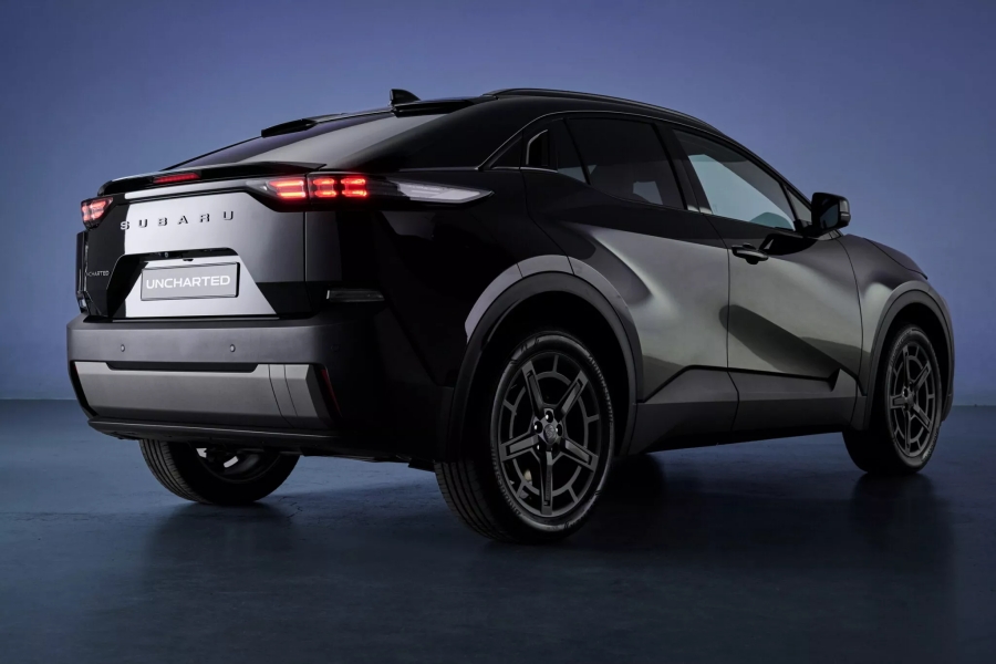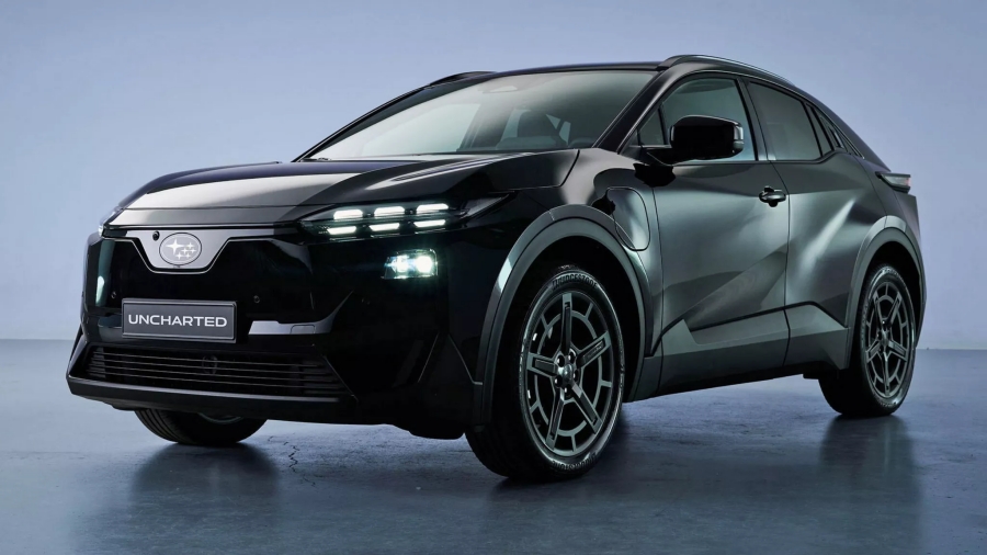 รุ่นแรกคือ Subaru Uncharted ซึ่งใช้พื้นฐานจาก Toyota C-HR+ แต่มีการออกแบบด้านหน้าที่แตกต่างกันออกไป โดยได้รับแรงบันดาลใจจาก Solterra รุ่นใหม่ ไม่ว่าจะเป็นไฟหน้าและกันชนที่มีเส้นสายเฉพาะตัว พร้อมล้ออัลลอยลายบึกบัน ด้านภายในมาพร้อมพวงมาลัยทรงเหลี่ยมและการตกแต่งภายในแบบเฉพาะรุ่น แต่ยังคงใช้หน้าจอ Infotainment ขนาด 14 นิ้วและแท่นชาร์จโทรศัพท์ไร้สายคู่
