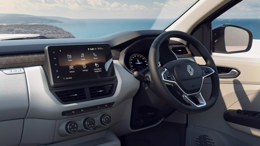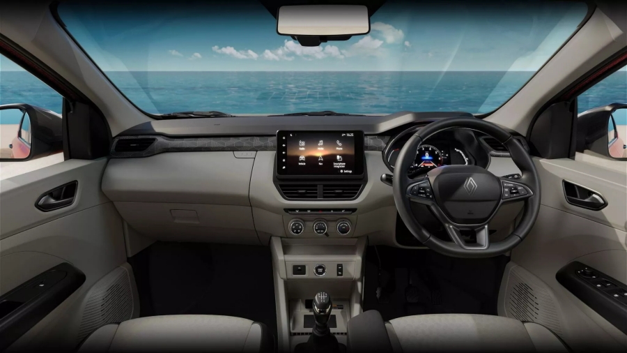 ภายในห้องโดยสารของ Triber ใหม่มาพร้อมแดชบอร์ดของ Renault Kiger SUV รุ่นพี่ โดยมีจอสัมผัส ระบบ infotainment ขนาด 8 นิ้วและหน้าปัดแบบดิจิทัลขนาด 7 นิ้ว (ในบางรุ่น) พร้อมเบาะนั่งหุ้มด้วยวัสดุโทนสีเบจให้ดูสว่างขึ้น พร้อมแผงควบคุมแอร์ออกแบบใหม่และเพิ่มฟังก์ชันอย่างแท่นชาร์จมือถือไร้สาย