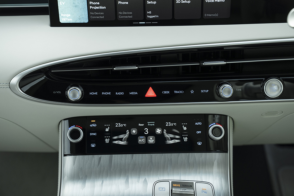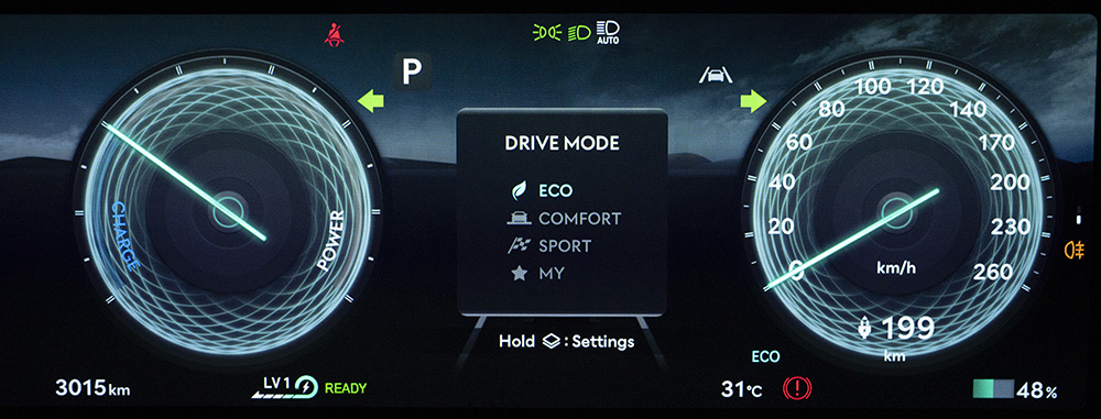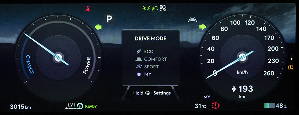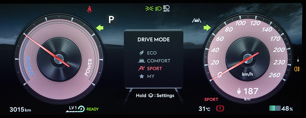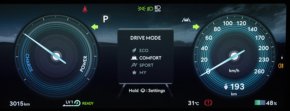 ขับเคลื่อน 4 ล้อ AWD พร้อมระบบ DAS (Disconnect Actuator System) กำลังรวมสูงสุด 320 กิโลวัตต์ (kW) หรือ 435 แรงม้า (PS) แรงบิดสูงสุด 700 นิวตันเมตร พ่วงด้วยแบตเตอรี่ Lithium-ion Polymer 697V ความจุ 84 kWh รองรับการชาร์จด้วยไฟฟ้ากระแสตรง DC Ultra-rapid Charge สูงสุด 350 kW