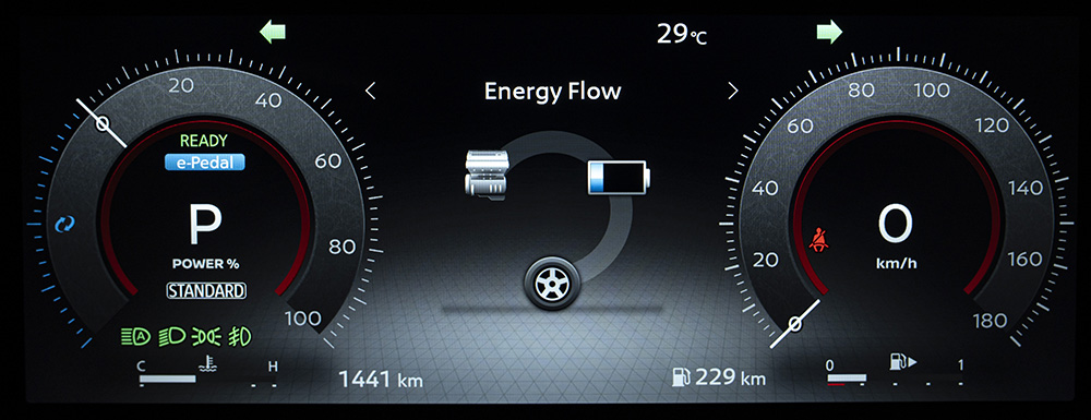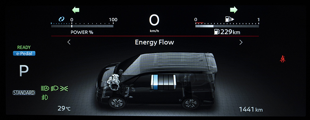 เครื่องยนต์เบนซิน 3 สูบ รหัส HR14DDe ขนาด 1.4 ลิตร 1,433 ซีซี. กระบอกสูบ x ระยะช่วงชัก : 78.0 x 100.0 มิลลิเมตร ฉีดจ่ายเชื้อเพลิงแบบ Direct-injection อัตราส่วนกำลังอัด 13.0 : 1 กำลังสูงสุด 98 แรงม้า (PS) ที่ 5,600 รอบ/นาที แรงบิดสูงสุด 123 นิวตันเมตร ที่ 5,600 รอบ/นาที รองรับน้ำมันเชื้อเพลิงสูงสุด Gasohol E10 ทำหน้าที่ปั่นไฟไปเก็บที่แบตเตอรี่ Lithium-ion ความจุ 1.77 kWh