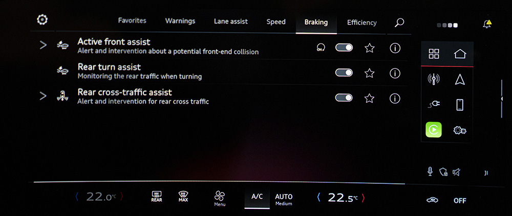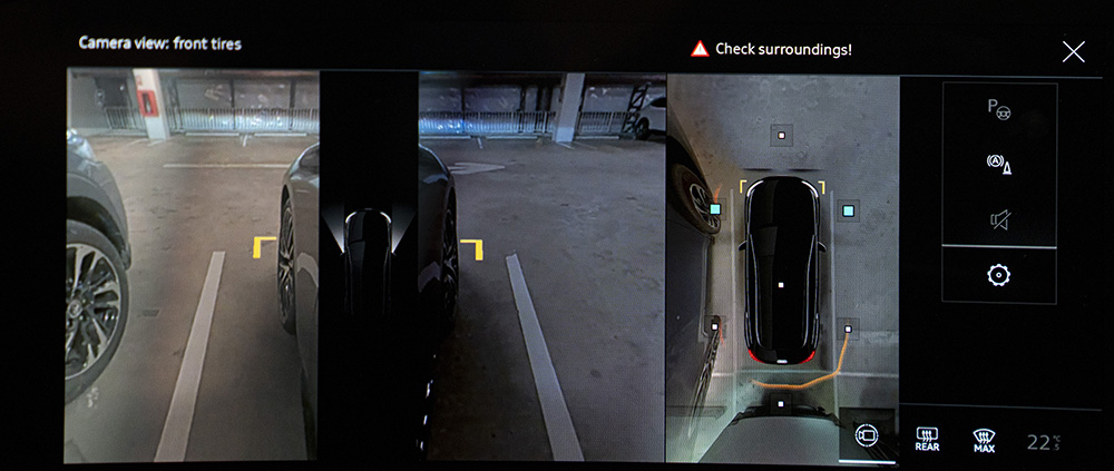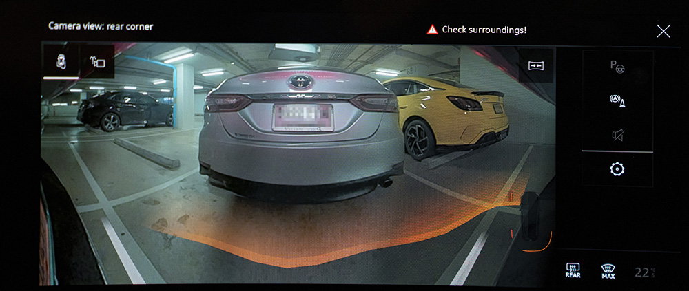 - ระบบแจ้งเตือนสภาพแวดล้อมด้านข้างและด้านท้ายรถ เมื่อเข้าเกียร์ถอยหลัง (Rear Cross-traffic Assist)