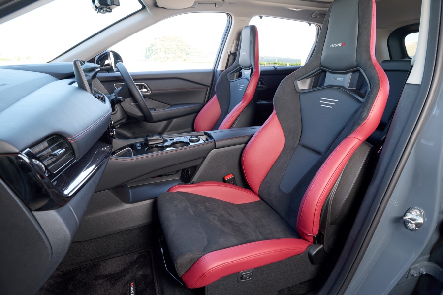 เบาะนั่งที่ติดตั้งเป็นอุปกรณ์มาตรฐานหุ้มวัสดุสีดำ-แดงสปอร์ต และสำหรับคนที่ต้องการความจัดจ้านยิ่งขึ้น Nissan มีเบาะทรงสปอร์ต Recaro NISMO เป็นออปชันให้เลือก มาพร้อมระบบปรับไฟฟ้าและฟังก์ชันอุ่นเบาะ