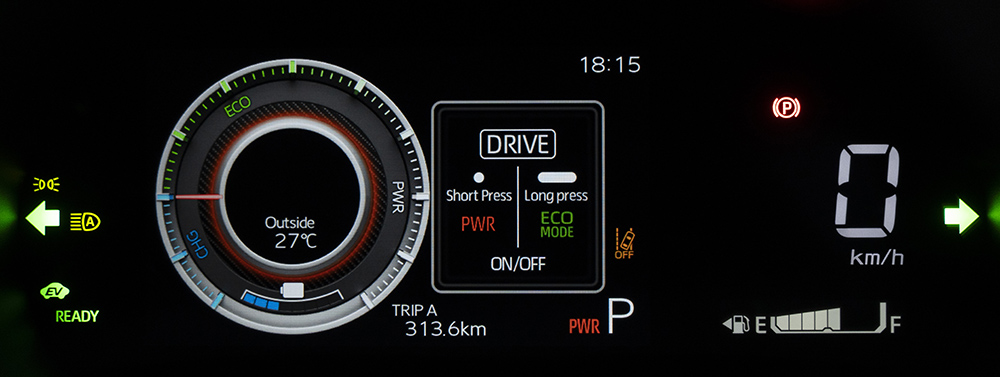 เครื่องยนต์รหัส 2NR-VEX เบนซิน 4 สูบ DOHC 16 วาล์ว ขนาด 1.5 ลิตร 1,496 ซีซี กระบอกสูบ x ระยะช่วงชัก : 72.5 x 90.6 มิลลิเมตร พร้อมระบบแปรผันวาล์ว Dual-VVT-i กำลังสูงสุด 91 แรงม้า (PS) ที่ 5,500 รอบ/นาที แรงบิดสูงสุด 121 นิวตันเมตร ที่ 4,000 – 4,800 รอบ/นาที ทำงานร่วมกับมอเตอร์ไฟฟ้ากำลังสูงสุด 80 แรงม้า (PS) แรงบิดสูงสุด 141 นิวตันเมตร กำลังสูงสุดรวมทั้งระบบ 111 แรงม้า พ่วงแบตเตอรี่แบบ Lithium-ion ส่งกำลังผ่านระบบเกียร์อัตโนมัติ E-CVT ขับเลื่อนล้อหน้า รองรับรับนำ้มันเชื้อเพลิงสูงสุด E20 ความจุถังน้ำมัน 36 ลิตร