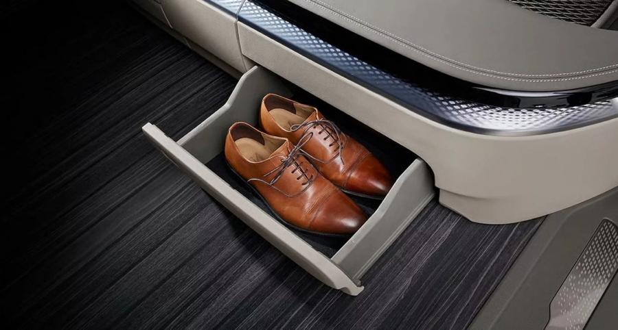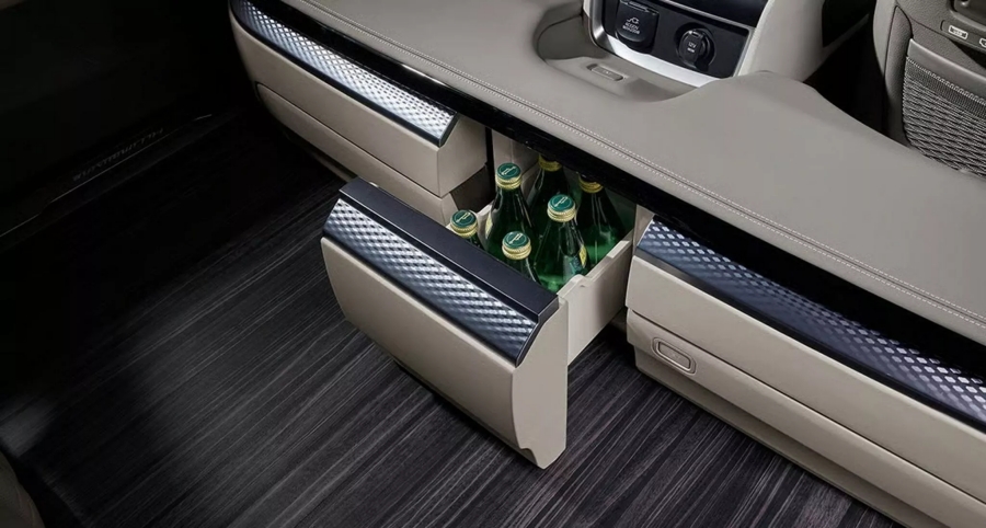 ผู้โดยสารยังเพลิดเพลินกับหน้าจอขนาด 21.5 นิ้วติดตั้งบนหลังคาพร้อมกราฟิกใหม่ หน้าจอควบคุมขนาด 7 นิ้วบริเวณคอนโซลกลาง แท่นชาร์จโทรศัพท์ไร้สาย โต๊ะพับ ที่แขวนเสื้อ และตู้เย็น โดยยังสามารถอัปเกรดเป็นระบบเครื่องเสียงเป็น Bose 12 ลำโพง ได้อีกด้วย