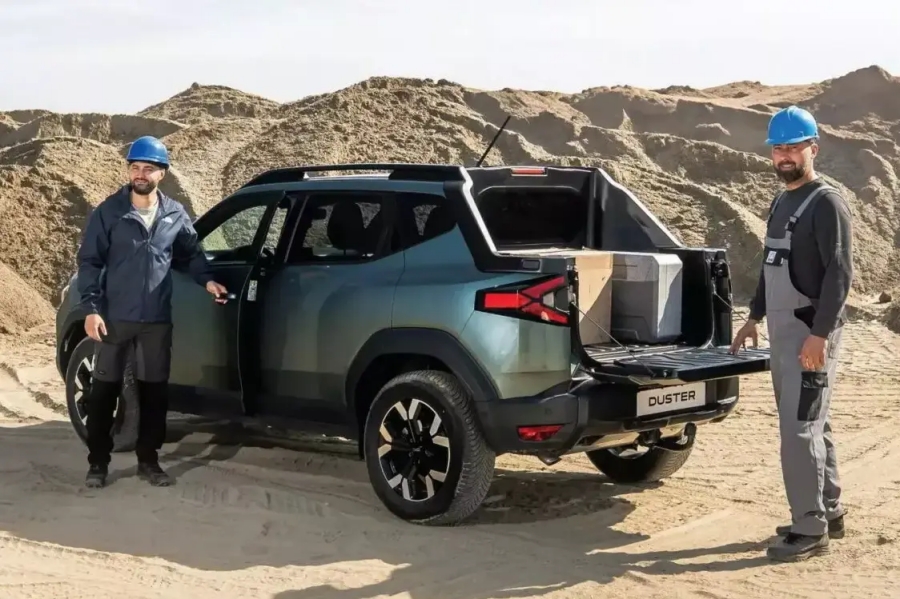 ที่ผ่านมา Duster มีให้เลือกเฉพาะตัวถัง SUV เท่านั้น แต่ล่าสุดได้ขยายไลน์อัปไปยังตัวถังกระบะ (Pick-Up) โดย Dacia จับมือกับบริษัทผู้ผลิตตัวถังดัดแปลงในท้องถิ่น Romturingia มารับหน้าที่แปลงโฉมให้ เนื่องจากโครงสร้างหลักและสัดส่วนภายนอกยังไม่เปลี่ยนแปลง รวมถึงยังคงมีประตูหลังอยู่ ทำให้ตัวรถกลายเป็นกระบะแบบ ดับเบิลแค็บ ที่มีเตียงบรรทุกขนาดเล็กน่ารักแต่ก็ดูแปลกตาไปเล็กน้อย พื้นที่กระบะรองรับน้ำหนักได้ 430 กิโลกรัม มาพร้อมรางเหล็ก 2 เส้นและห่วงยึดสัมภาระ 4 จุด