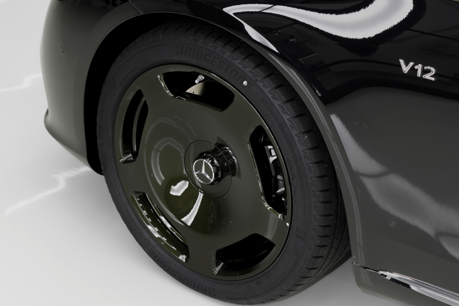โปรแกรม MANUFAKTUR ยังสะท้อนความหรูหราในรายละเอียดด้วยตัวถังทูโทนสีเขียว Olive Metallic ตัดกับสีดำ Obsidian Black Metallic พร้อมตกแต่งด้วยเส้นพินสไตรป์สีเงิน Hightech Silver ใช้เวลาพ่นสีพิถีพิถันสูงสุด 10 วัน ล้ออัลลอย Forged 5 ก้านสีเขียว Olive Metallic และไฮไลท์ตราสัญลักษณ์พิเศษ Maybach พร้อมเหรียญทองคำแท้ 24 กะรัตสลักเลข “12” ที่ C-Pillar ยืนยันเอกลักษณ์เฉพาะรุ่น ภายในห้องโดยสารตกแต่งด้วยหนัง Nappa สีน้ำตาล Saddle Brown คู่กับไม้ Burr Walnut พวงมาลัยหุ้มหนังโดยฝีมือขั้นเทพ หลังคาหนังเดินตะเข็บเพชร และแผ่นป้าย “1 of 50” ที่คอนโซลกลาง