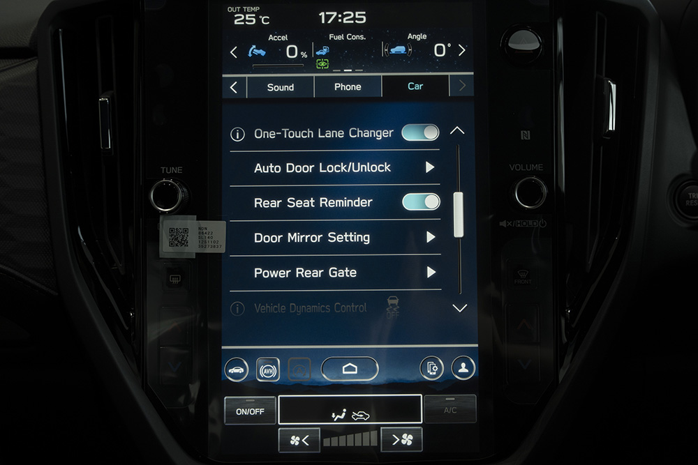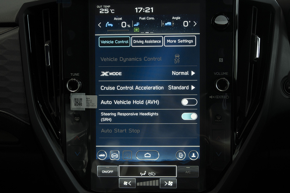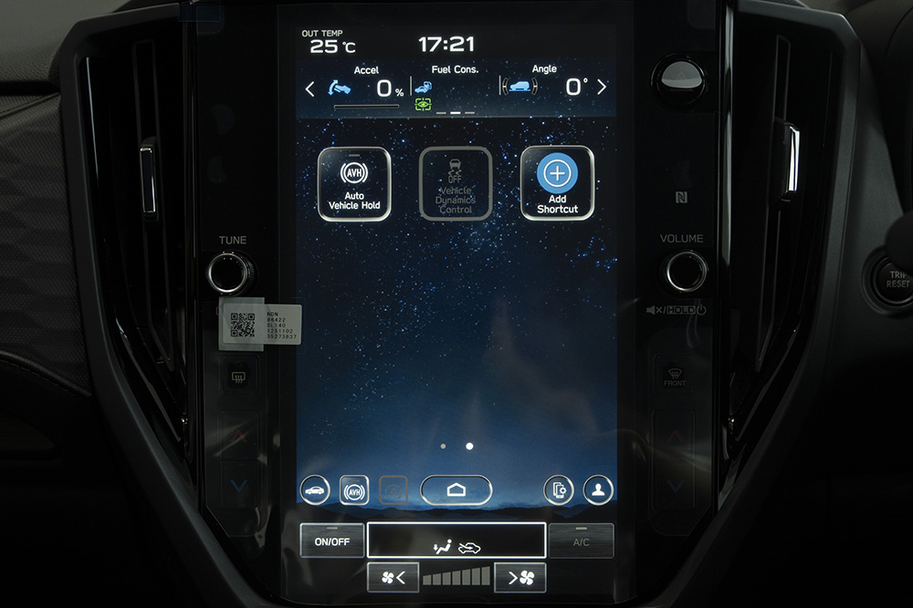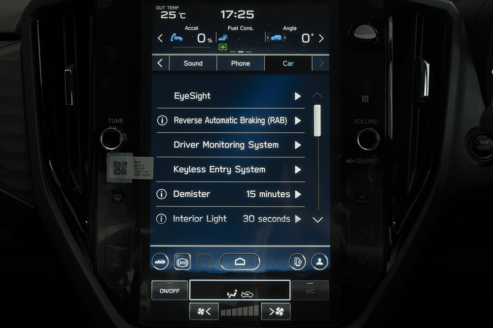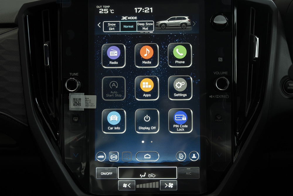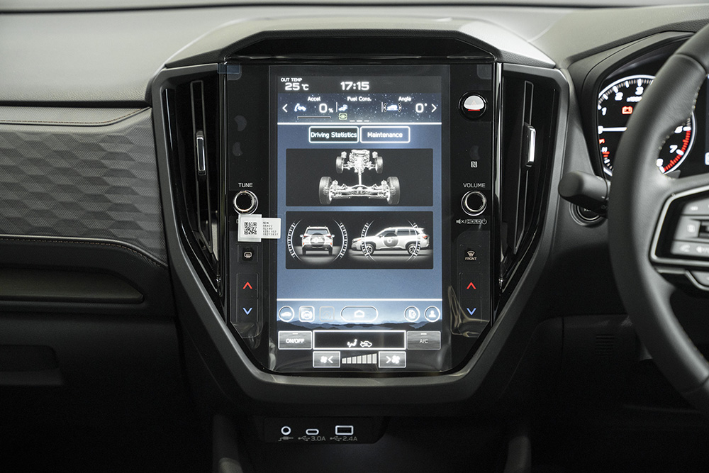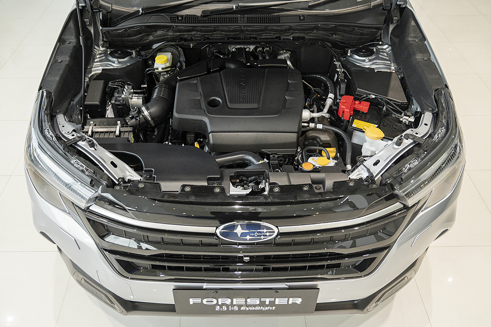 เครื่องยนต์รหัส FB25 เบนซิน 4 สูบนอน BOXER DOHC 16 วาล์ว ขนาด 2.5 ลิตร 2,498 ซีซี. กระบอกสูบ x ระยะช่วงชัก : 94.0 x 90.0 มิลลิเมตร ฉีดจ่ายเชื้อเพลิงแบบ Direct-injection อัตราส่วนกำลังอัด 12.0 : 1 พร้อมระบบแปรผันวาล์ว Dual AVCS พละกำลังสูงสุด 185 แรงม้า (PS) ที่ 5,800 รอบ/นาที แรงบิดสูงสุด 247 นิวตันเมตร ที่ 3,700 รอบ/นาที จับคู่กับเกียร์อัตโนมัติ Lineartronic CVT 8 Speed ขับเคลื่อน 4 ล้อ Symmetrical All-Wheel Drive ความจุถังนำ้มัน 63 ลิตร