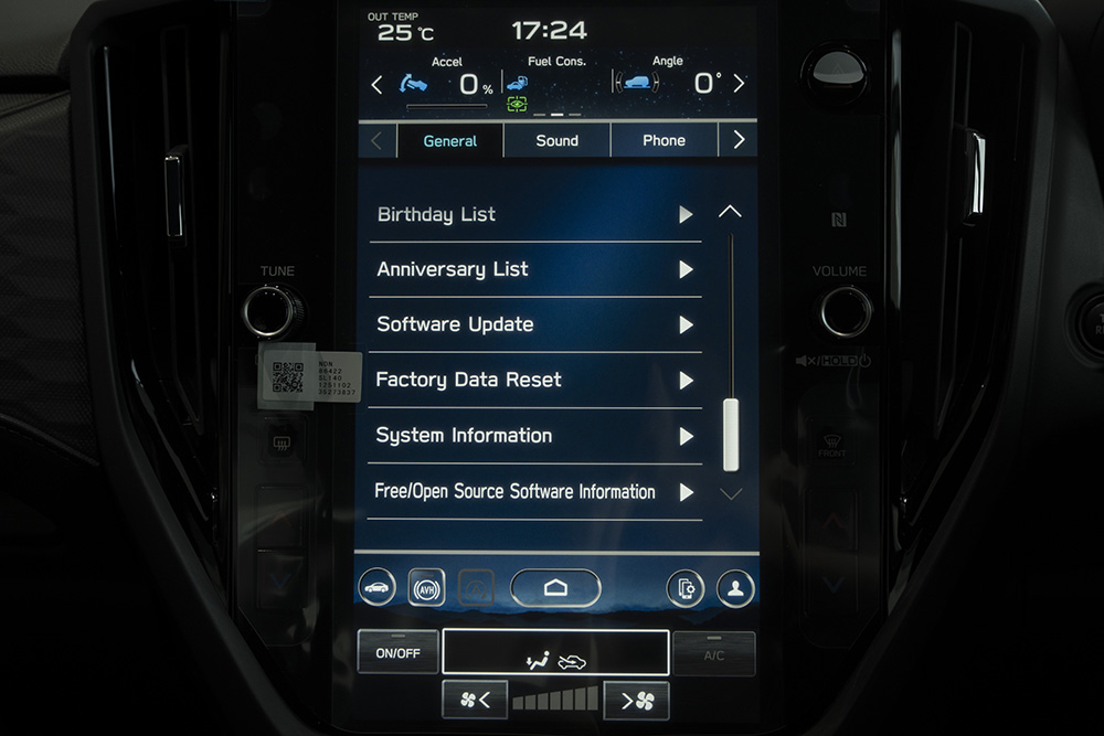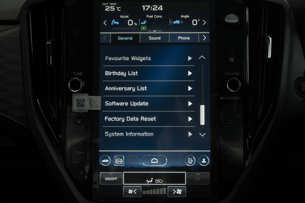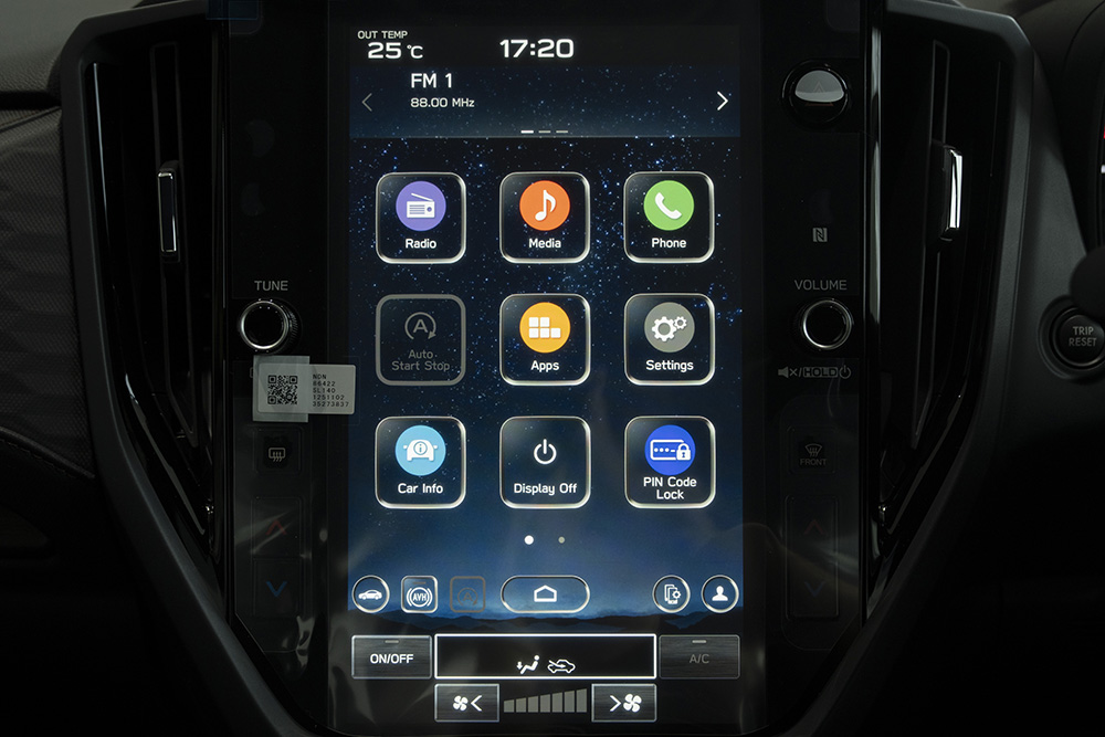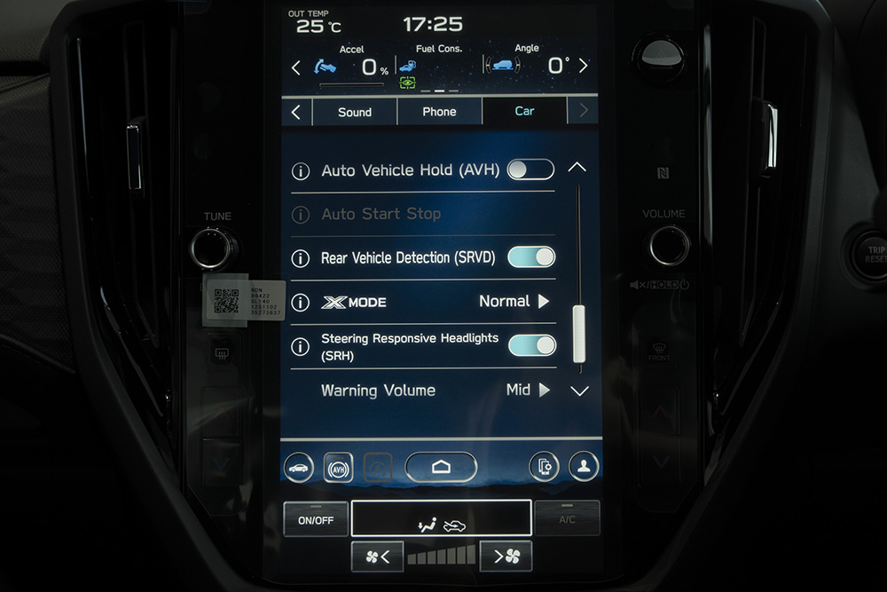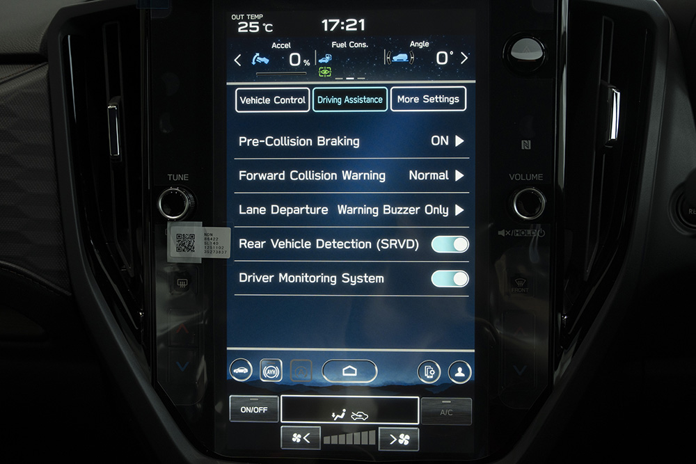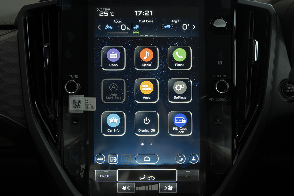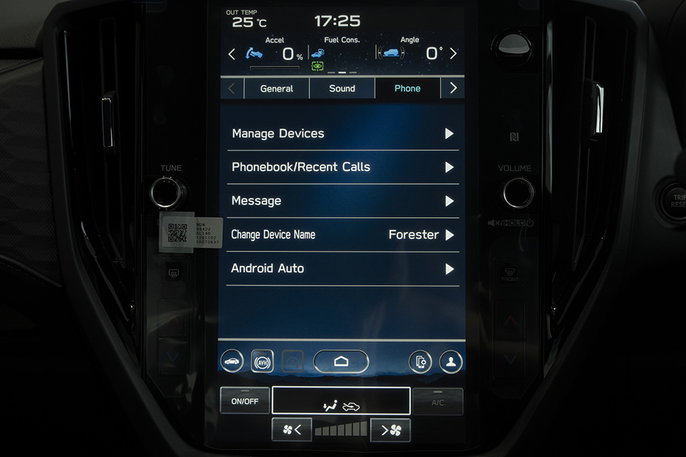 เครื่องยนต์รหัส FB25 เบนซิน 4 สูบนอน BOXER DOHC 16 วาล์ว ขนาด 2.5 ลิตร 2,498 ซีซี. กระบอกสูบ x ระยะช่วงชัก : 94.0 x 90.0 มิลลิเมตร ฉีดจ่ายเชื้อเพลิงแบบ Direct-injection อัตราส่วนกำลังอัด 12.0 : 1 พร้อมระบบแปรผันวาล์ว Dual AVCS พละกำลังสูงสุด 185 แรงม้า (PS) ที่ 5,800 รอบ/นาที แรงบิดสูงสุด 247 นิวตันเมตร ที่ 3,700 รอบ/นาที จับคู่กับเกียร์อัตโนมัติ Lineartronic CVT 8 Speed ขับเคลื่อน 4 ล้อ Symmetrical All-Wheel Drive ความจุถังนำ้มัน 63 ลิตร
