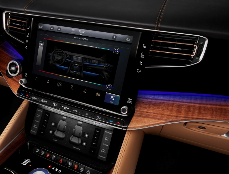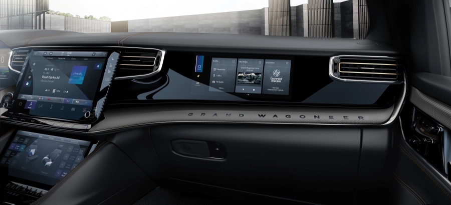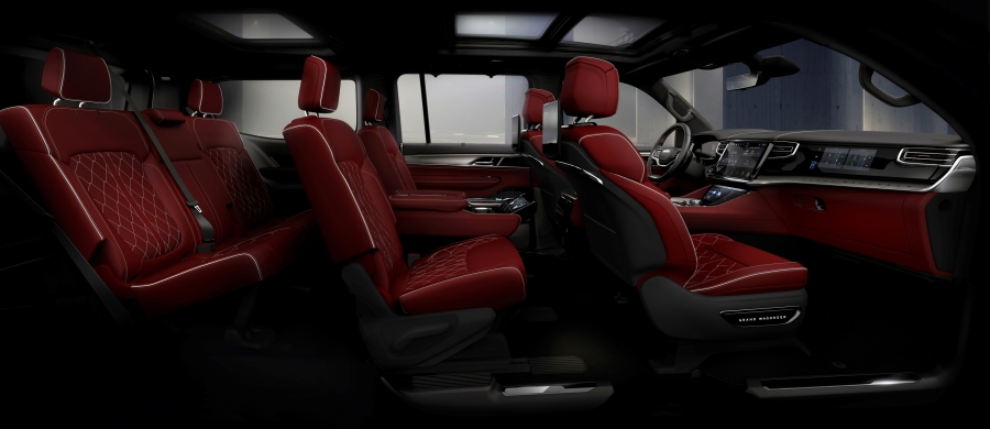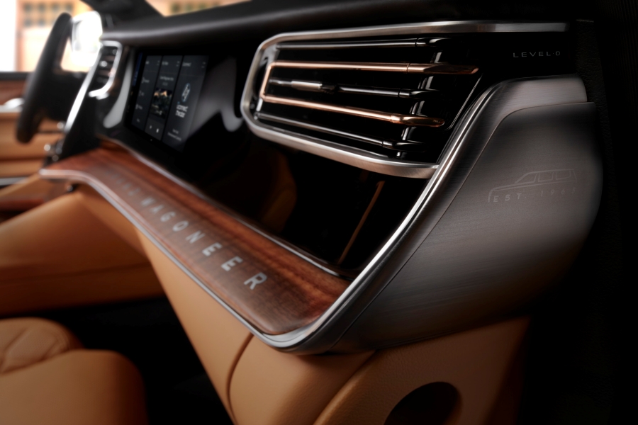 ภายนอกของ Grand Wagoneer ใหม่มาพร้อมไฟหน้า LED แบบใหม่ ที่ปัดน้ำฝนอัตโนมัติและประตูท้ายเปิด-ปิดด้วยไฟฟ้า เสริมความสะดวกด้วยกระจกมองข้างปรับลดแสงอัตโนมัติ ระบบสตาร์ตเครื่องยนต์จากระยะไกล และล้ออัลลอยขนาด 18 นิ้ว ภายในห้องโดยสารยังคงความหรูหรา โดยติดตั้งพวงมาลัยหนังปรับไฟฟ้าพร้อมระบบทำความร้อน จอแสดงผล Full Digital ขนาด 10.25 นิ้ว และหน้าจอกลางระบบสัมผัสขนาด 12 นิ้ว พร้อมการเชื่อมต่อ Uconnect5