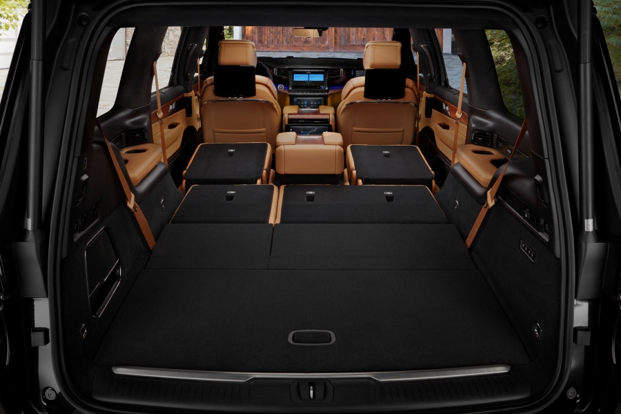 เบาะหน้าหุ้มด้วยหนัง Capri แบบเจาะรู ปรับด้วยไฟฟ้า 12 ทิศทาง พร้อมระบบอุ่นและระบายอากาศ เสริมด้วยเบาะกัปตันแถวสองและเบาะแถวสามพับแยก เพิ่มความสะดวกในการใช้งาน นอกจากนี้ยังมีที่ชาร์จไร้สาย ระบบปรับอากาศอัตโนมัติ 3 โซน และเครื่องเสียง Alpine 9 ลำโพง พร้อมชุดระบบช่วยขับขี่ครบครัน เช่น Adaptive Cruise Control Blind Spot Monitoring และ Active Lane Management