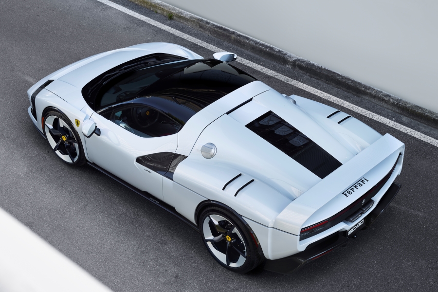 ขุมพลังที่ยกมาจาก 296 GTB เครื่องยนต์เบนซิน รหัส F163 V6 สูบ (ทำมุม 120 องศา) 3.0 ลิตร 2,992 ซีซี กระบอกสูบ x ช่วงชัก : 88 x 82 มิลลิเมตร กำลังอัด 9.4 : 1 พ่วงระบบอัดอากาศ Twin-Turbocharged กำลังสูงสุด 663 แรงม้า (PS) ทำงานร่วมกับมอเตอร์ไฟฟ้า กำลังสูงสุด 167 แรงม้า (PS) พ่วงด้วยแบตเตอรี่ Li-thium ion ความจุ 7.45 kWh