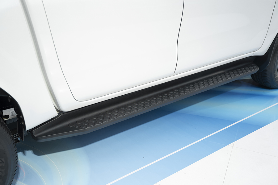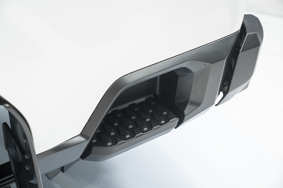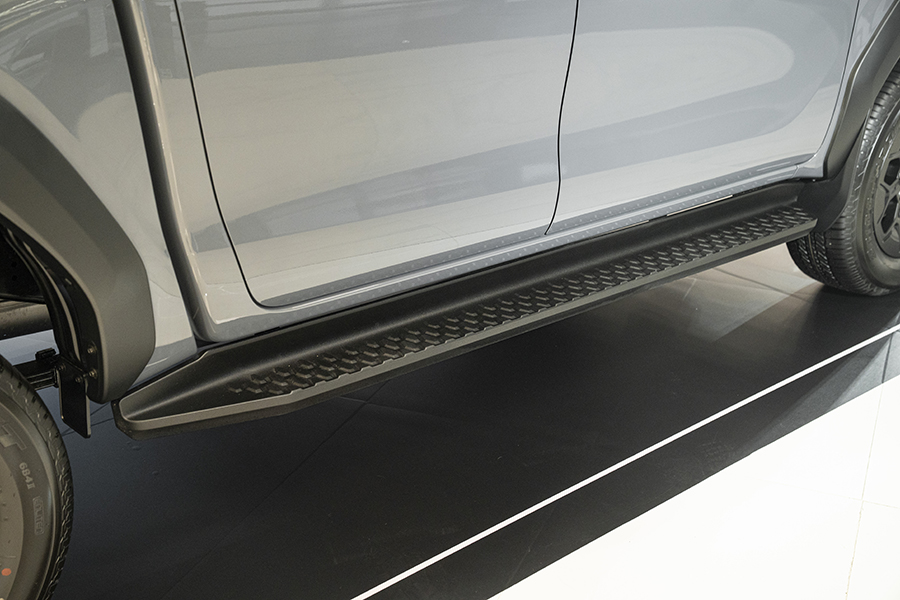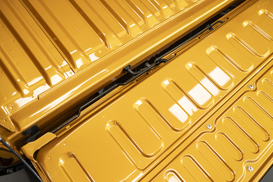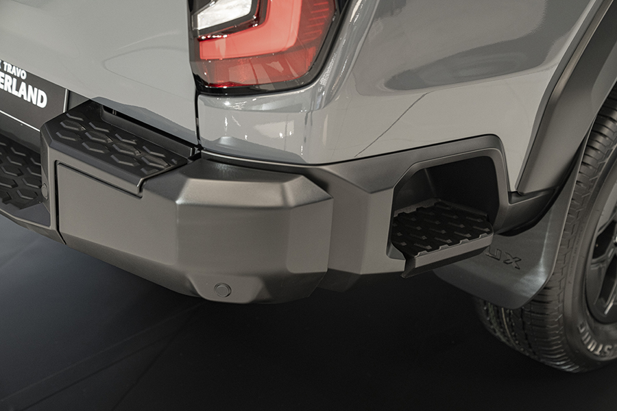 - สัญญาลักษณ์ Travo-e ที่ขอบด้านข้างกระบะท้าย