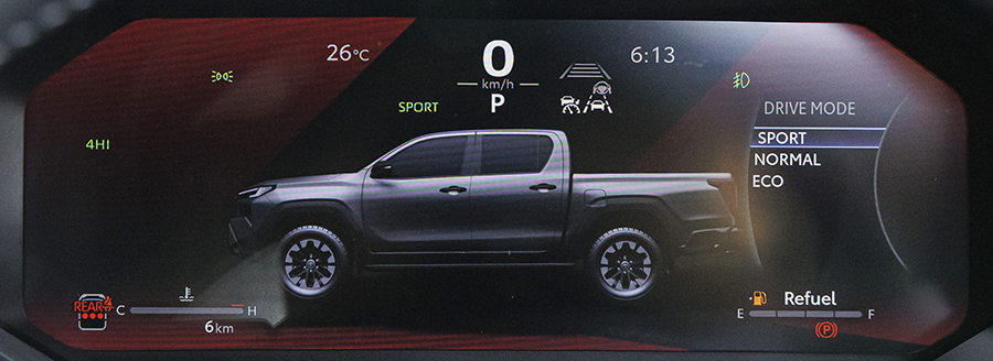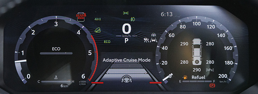มาพร้อมโหมดการขับขี่ Multi-Terrain Select (MTS) ปรับการทำงานของเครื่องยนต์ การตอบสนองของคันเร่ง และการควบคุมเบรก ให้เหมาะสมกับสถานการณ์การขับขี่แบบ Off-road ทำงานเมื่ออยู่ที่โหมด 4H หรือ 4L มีให้เลือก 6 รูปแบบ ดังนี้