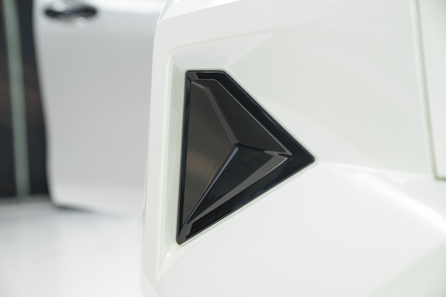 - กระจังหน้าด้านบนสีเดียวกับตัวรถ (ดีไซน์เฉพาะ Travo-e)
