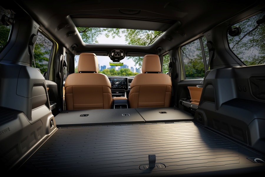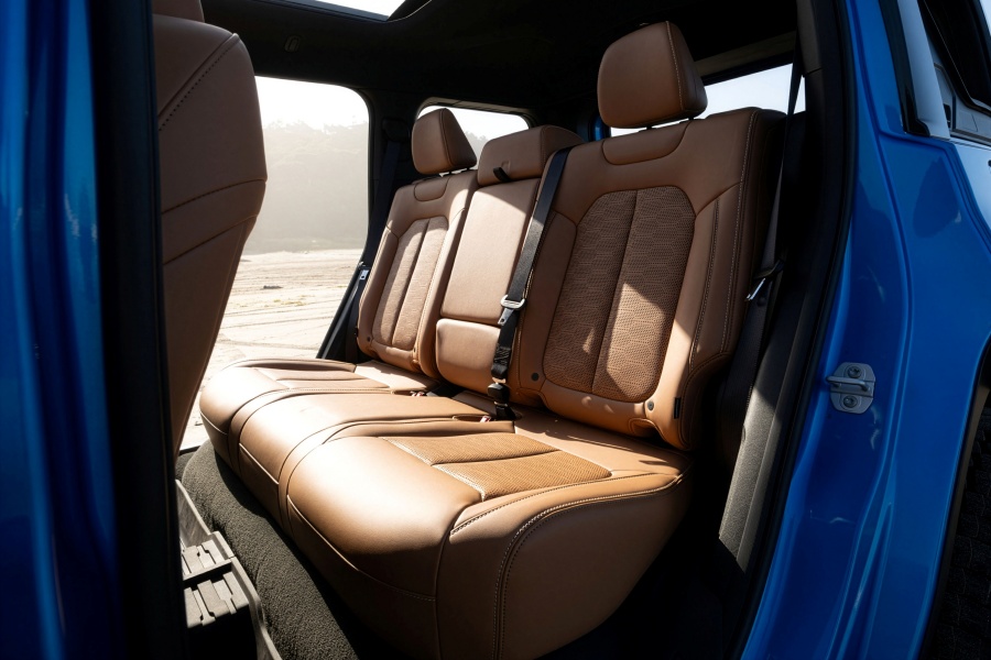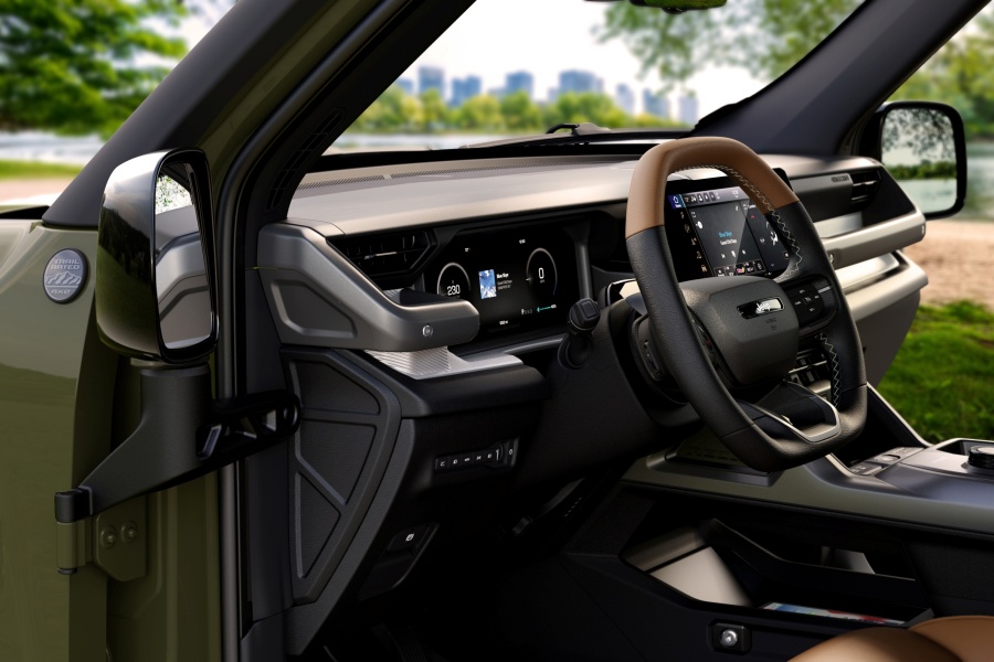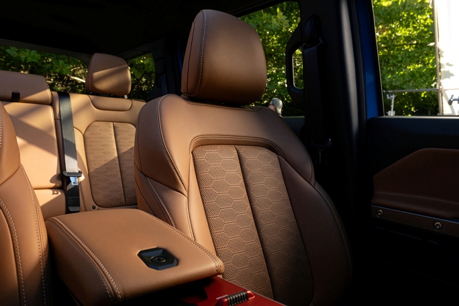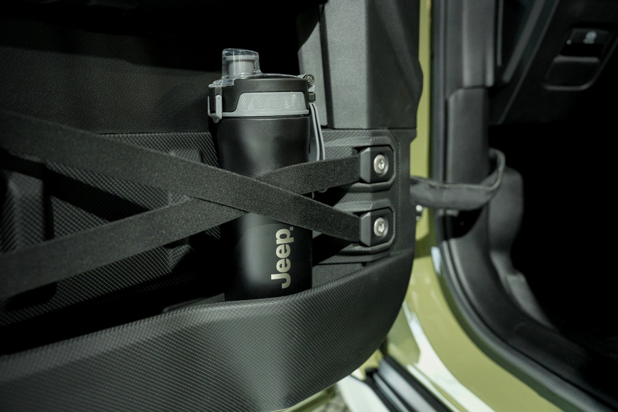 ภายในห้องโดยสาร Jeep เลือกใช้วัสดุทนทานสไตล์ลุย แต่ใส่เทคโนโลยีล่าสุดแบบจัดเต็ม มาพร้อมหน้าจอรวมขนาด 26 นิ้ว (12.3 นิ้ว + 14.5 นิ้ว) ใหญ่ที่สุดในรถ Jeep ทำงานด้วยระบบ Uconnect 5 รองรับการแสดงข้อมูลไต่เขา มุมเอียง และภาพกล้องต่าง ๆ รวมถึงมีรางอุปกรณ์เสริมสำหรับติดตั้งกล้อง GoPro ระบบเสียง Alpine ถูกย้ายลำโพงไว้ใต้เบาะเพื่อคงคุณภาพเมื่อต้องถอดประตู ตัวคอนโซลด้านหน้ามีดีไซน์แนวนอนพร้อมมือจับสไตล์ Jeep คลาสสิก