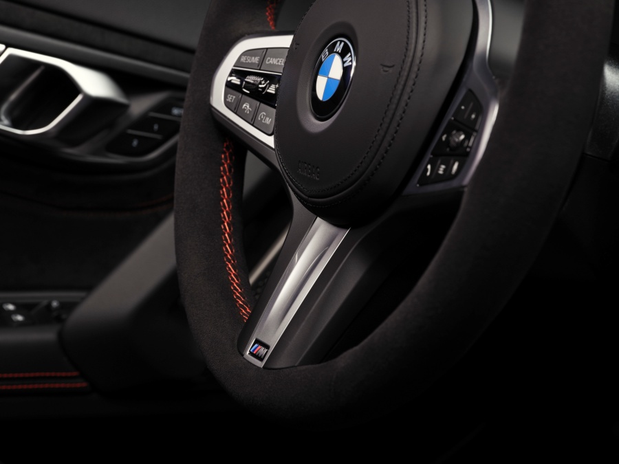 ภายในห้องโดยสารปรับดีไซน์ให้แตกต่างจากรุ่นปกติอย่างชัดเจน ด้วยงานตัดเย็บตะเข็บสีแดงทั่วทั้งคอนโซล เบาะนั่ง แผงประตู และพรมรองพื้น ขณะที่วัสดุหุ้มเบาะที่ผสมผสานระหว่างหนัง Vernasca และ Alcantara พร้อมเข็มขัดนิรภัยลวดลายสามสีตามแบบฉบับ M Power ปิดท้ายด้วยระบบความบันเทิงและความสะดวกสบายเต็มรูปแบบ เช่น หน้าจอ Head-Up Display ระบบเครื่องเสียง Harman Kardon และระบบช่วยขับขี่ Driving Assistance Package