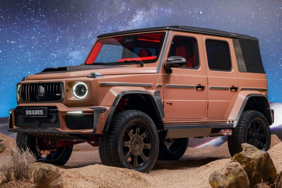 ในด้านงานออกแบบภายนอก Brabus เติมเต็มความดุดันตามสไตล์ด้วยชุดแต่งคาร์บอนไฟเบอร์รอบคัน ทั้งกันชน ชายล่าง ซุ้มล้อ ช่องดักอากาศ และฝากระโปรงพร้อม Brabus Powerdome รวมถึงไฟส่องสว่างเสริม และสีตัวถังใหม่ที่เรียกว่า Pale Brown ซึ่งให้ภาพลักษณ์ลักชัวรี่แต่ยังคงความลุย