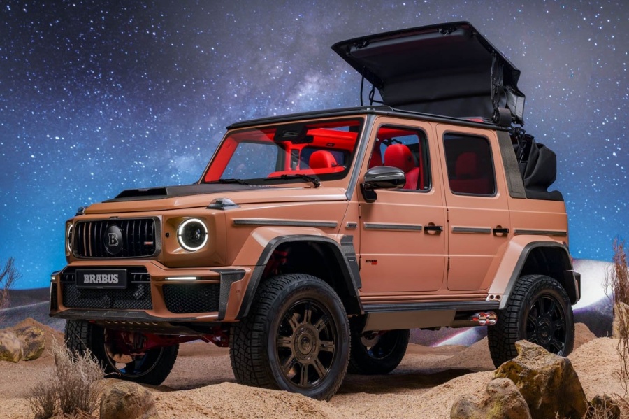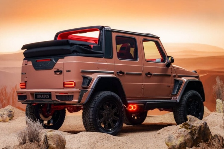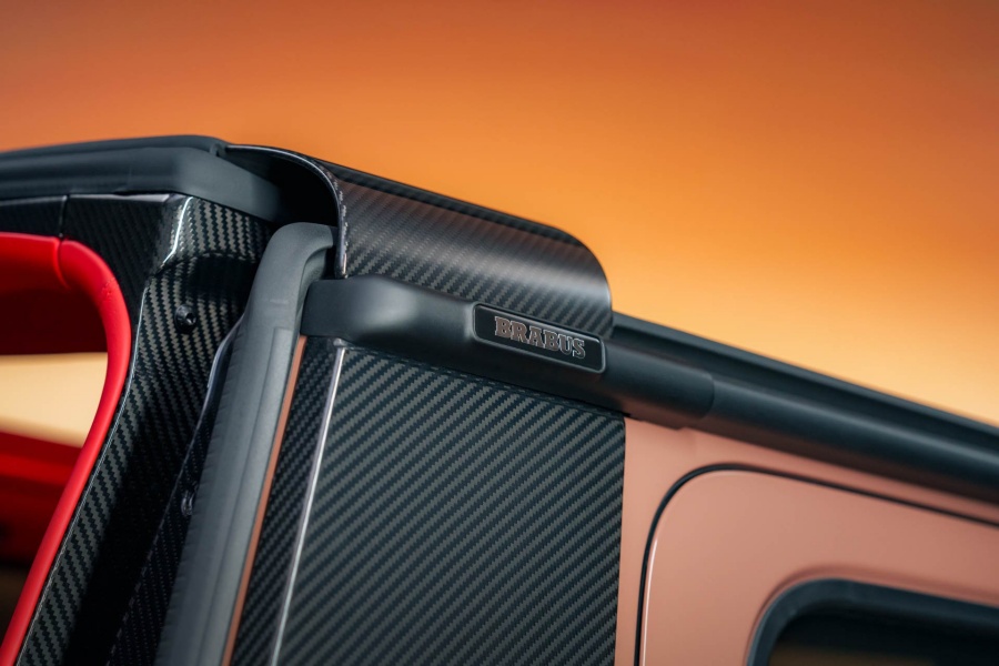 แต่ไฮไลต์ที่แท้จริงคือ หลังคาผ้าใบแบบเปิด-ปิดอัตโนมัติด้วยไฟฟ้า ซึ่ง Brabus ระบุว่าต้องใช้ชิ้นส่วนที่ออกแบบใหม่กว่า 500 ชิ้น เพื่อให้คุณภาพเทียบเท่ารถที่ผลิตจากโรงงาน โดยใช้เวลาทำงานเพียง 20 วินาที และเมื่อพับแล้วจะเก็บเรียบร้อยหลังเบาะหลัง โดยยังคงเอกลักษณ์งานออกแบบเหลี่ยมคมของ G-Wagen เอาไว้