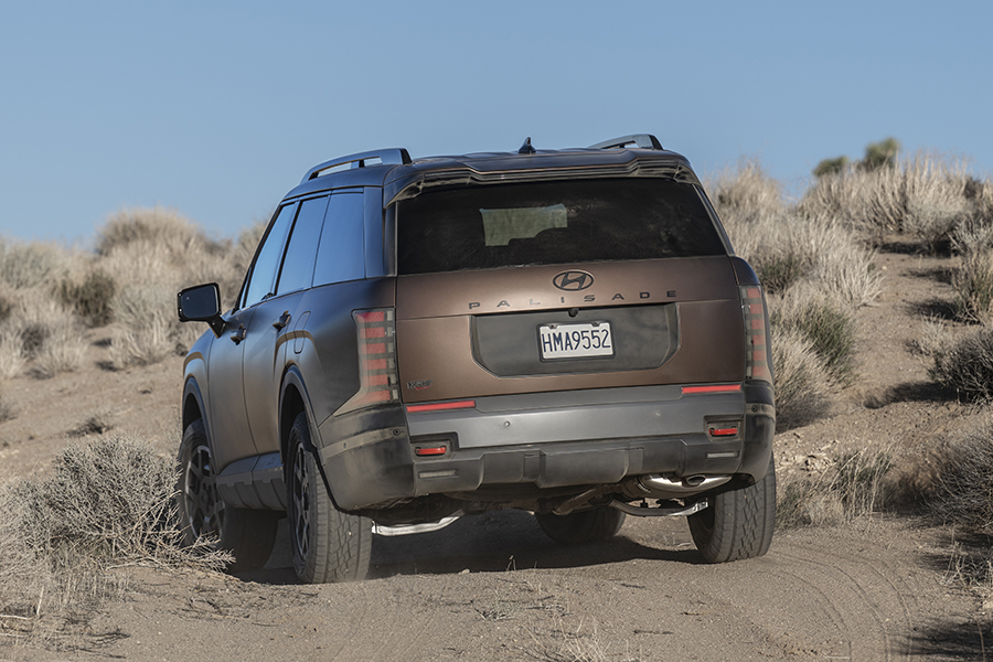 Hyundai Palisade มาพร้อมกับความเปลี่ยนแปลงครั้งใหญ่ด้านงานออกแบบ ดีไซน์ภายนอกมีความเป็นเหลี่ยมสันมากกว่ารุ่นก่อนหน้า มาในสไตล์ Boxy Design และเสริมความพรีเมียมด้วยทริมการตกแต่งสีเงิน เส้นสายต่างๆ บนเปลือกตัวถังเน้นความเรียบง่าย ไม่ฉวัดเฉวียน มีการซ่อนอุปกรณ์ต่างๆ เช่น ใบปัดน้ำฝนด้านหลัง และปล่อยท่อไอเสีย เพื่อให้ดูสะอาดตามากที่สุด สำหรับล้ออัลลอย มีลวดลายและขนาดแตกต่างกันในแต่ละรุ่นย่อย โดยรุ่นหรูสุดอย่าง Calligraphy จะได้ล้อขนาด 21 นิ้ว รัดด้วยยาง 265/45 R21