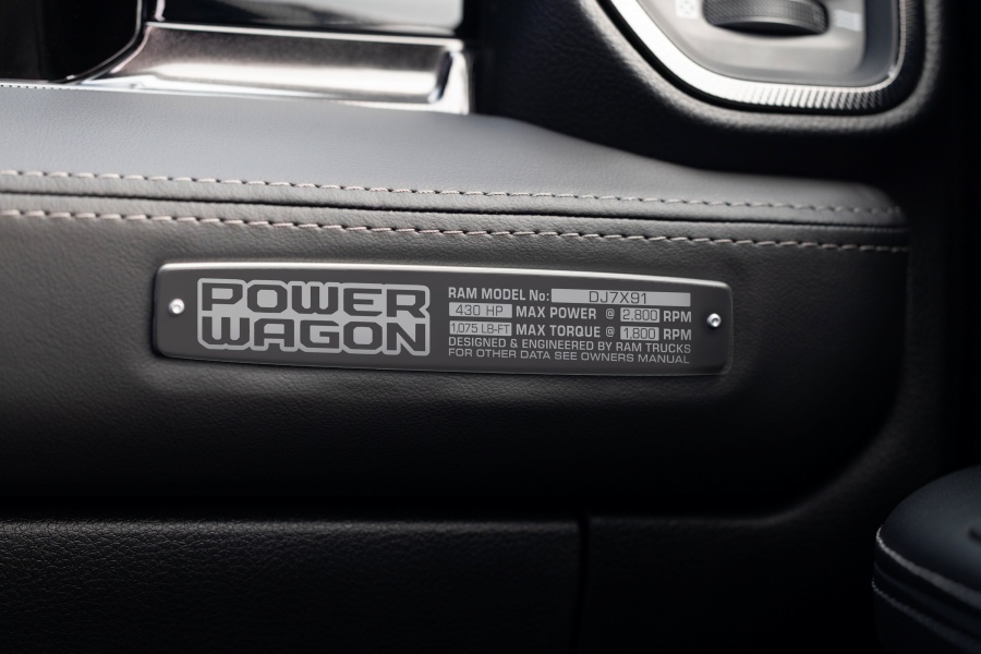 รูปลักษณ์ภายนอกยังคงความดุดันด้วยยาง All-Terrain ขนาด 34 นิ้ว รัดกับล้อขนาด 20 นิ้ว สีดำ Satin Black ฝากระโปรงหน้าออกแบบใหม่สไตล์สปอร์ต พร้อมด้วยสติ๊กเกอร์ Power Wagon ที่กระบะท้าย และตรา Cummins สีดำด้านบนซุ้มล้อ ภายในห้องโดยสารยกระดับความหรู ที่เลือกได้ทั้งเบาะผ้าหรือเบาะหนังปรับไฟฟ้าพร้อมระบบระบายอากาศ