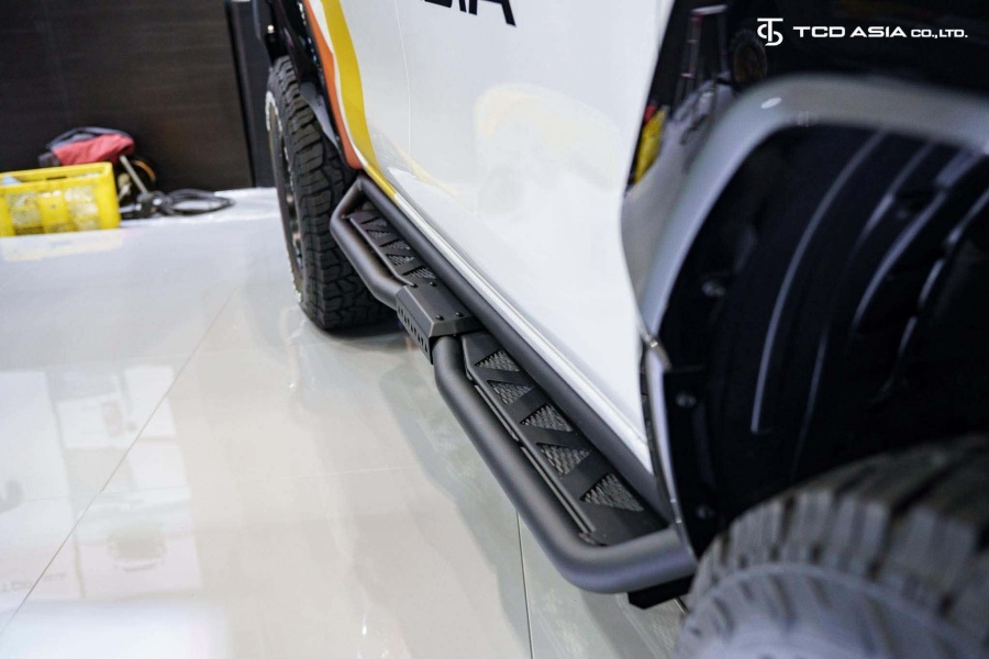 ภายในบูธมีการจัดแสดงรถยนต์ 2 รุ่น ได้แก่ Toyota Land Cruiser ”FJ“ และ Toyota Hilux Travo ซึ่งพัฒนาเป็นรถโชว์เคส เพื่อสะท้อนศักยภาพด้านการออกแบบและการคัสตอมไมซ์ภายใต้มาตรฐานของ Toyota