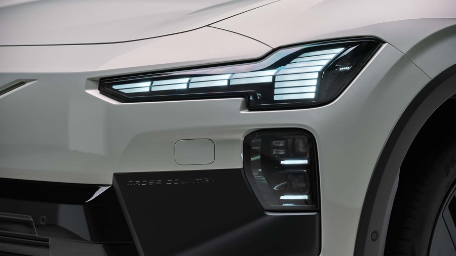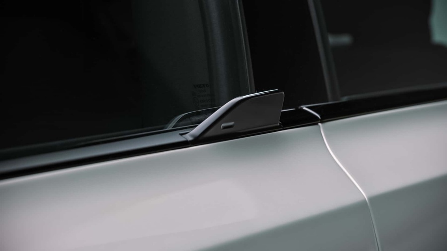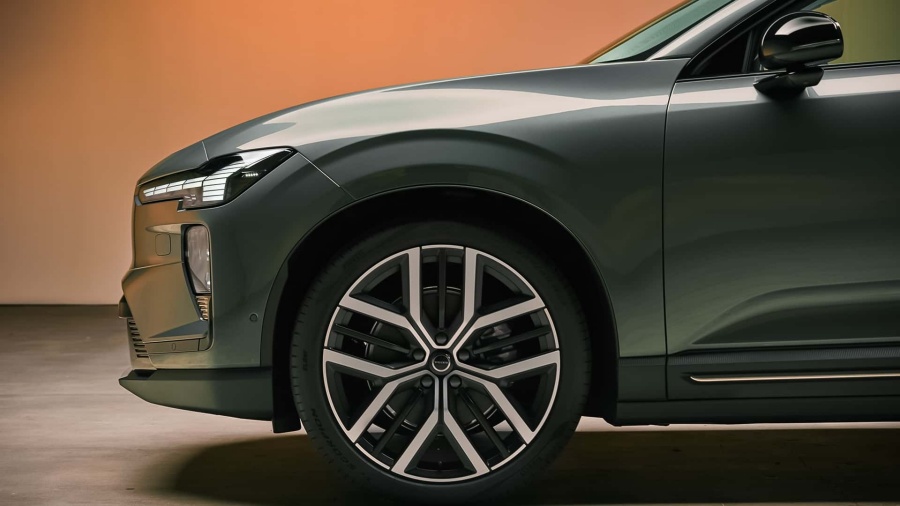 งานออกแบบภายนอกถอดแบบจากรุ่นพี่ EX90 แต่ปรับให้สปอร์ตและเพรียวขึ้น จุดเด่นคือมือจับประตูไฟฟ้าแบบไร้ก้านจับ ที่ซ่อนอยู่ในแนวเส้นตัวถัง ช่วยลดแรงต้านอากาศจนได้ค่าสัมประสิทธิ์แรงต้านอากาศ (Cd) ต่ำเพียง 0.26 ไฟหน้าแยกส่วนพร้อมไฟ DRL ทรง Thor’s Hammer เวอร์ชันใหม่ กระจังหน้าแบบปิดทึบพร้อมลวดลายเฉพาะตามสไตล์รถ EV และไฟท้ายแนวตั้งเอกลักษณ์ Volvo ที่ผสานกับกระจกฝาท้ายอย่างลงตัว