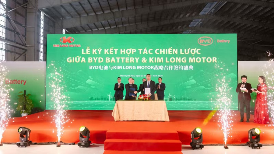 BYD ได้ลงนามข้อตกลงอย่างเป็นทางการกับ Kim Long Motors บริษัทผู้ผลิตยานยนต์เชิงพาณิชย์ของเวียดนาม เพื่อก่อสร้างโรงงานผลิตแบตเตอรี่รถยนต์ไฟฟ้าแห่งใหม่ในภาคกลางของประเทศ โครงการนี้มีมูลค่าการลงทุนราว 130 ล้านเหรียญสหรัฐ (4,102,799,753 บาท) ถือเป็นก้าวสำคัญในยุทธศาสตร์ขยายธุรกิจระดับโลกของ BYD โดยเฉพาะในภูมิภาคเอเชียตะวันออกเฉียงใต้