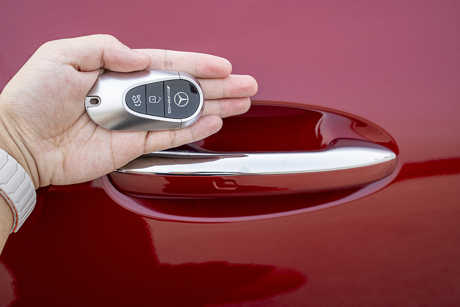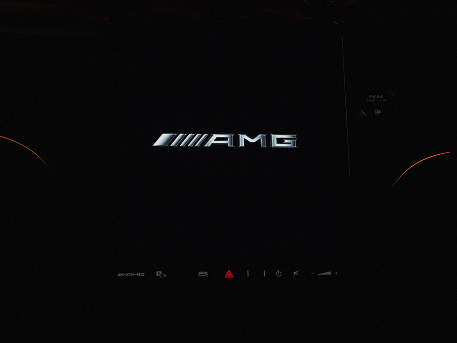 • กาบบันไดเรืองแสงพร้อมสัญลักษณ์ Mercedes–AMG
