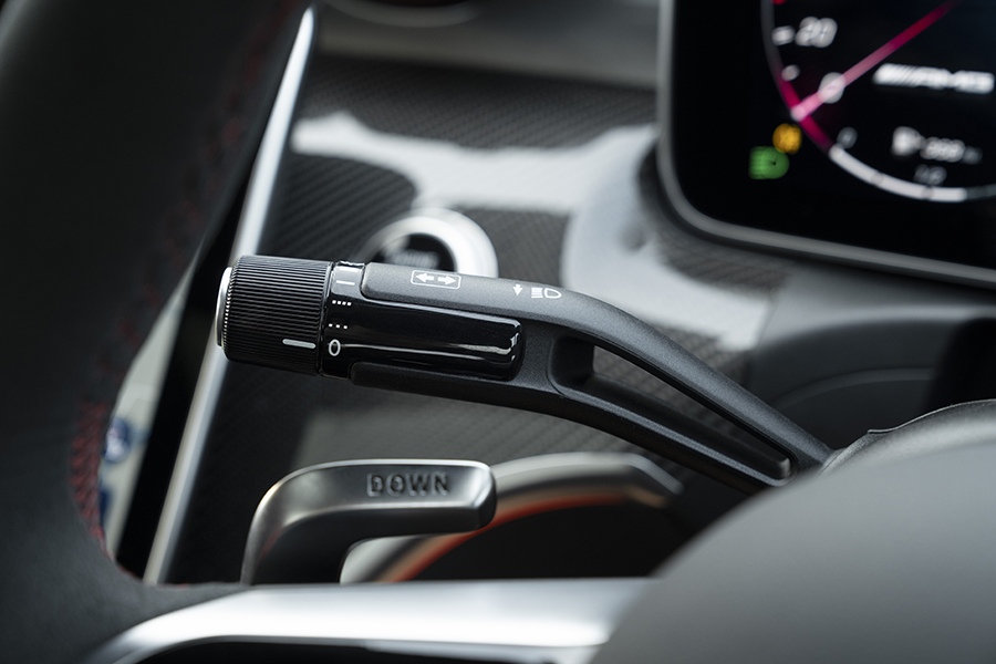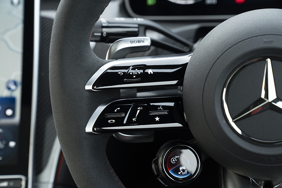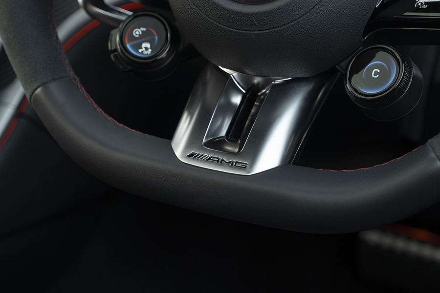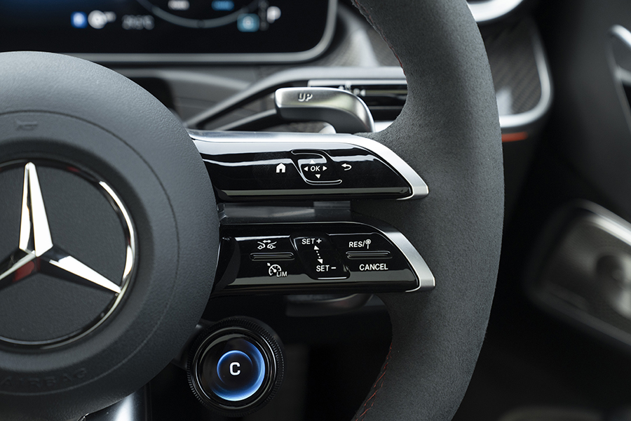 • พวงมาลัยมัลติฟังก์ชันแบบสปอร์ต AMG Performance steering wheel หุ้มด้วยหนัง Nappa leather ตัดสลับ MICROCUT microfibre