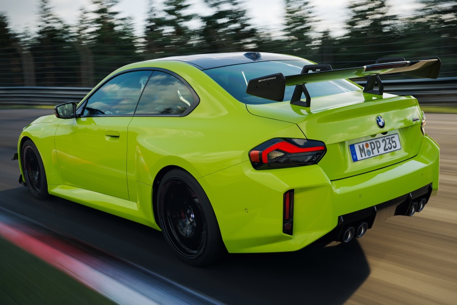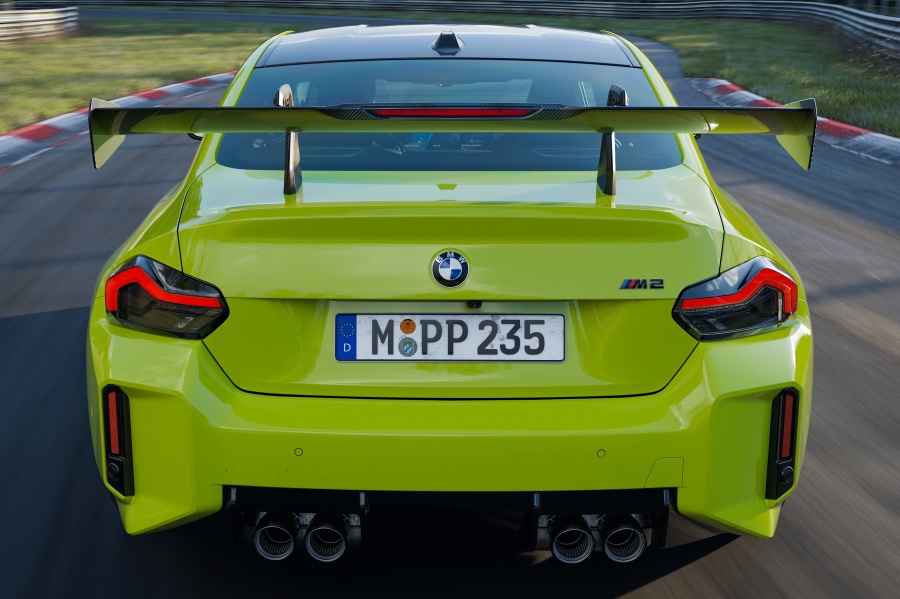 ไฮไลต์สำคัญคือสปอยเลอร์หลังแบบ swan-neck ที่สามารถปรับระดับได้ด้วยมือ ที่มีดีไซน์ใกล้เคียงกับรถแข่ง BMW M4 GT4 และ BMW M4 GT3 โดยในโหมด Race สปอยเลอร์หลังจะเลื่อนถอยหลัง 50 มม. เพื่อเพิ่มแรงกด ส่วนโหมด Street สำหรับวิ่งบนถนนยังคงผ่านข้อกำหนดถนนในเยอรมนี อีกทั้งยังสามารถปรับมุมปะทะลม และติดตั้งไฟเบรกไว้กึ่งกลางได้อีกด้วย