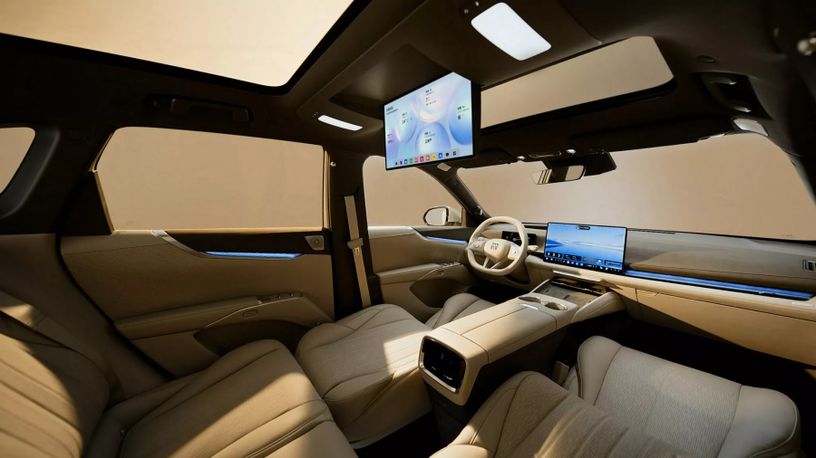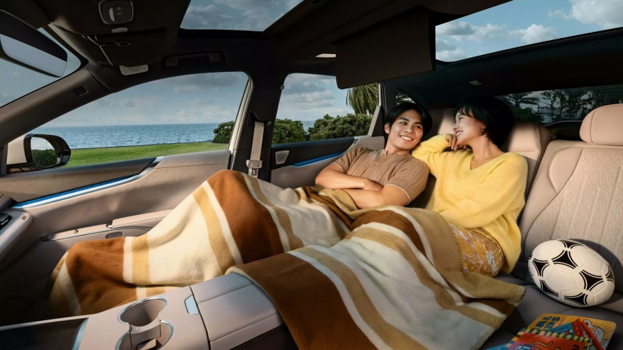 จุดเด่นอยู่ที่เบาะแถวสองซึ่งถูกออกแบบให้เป็นพื้นที่พักผ่อน มีฟังก์ชั่นตู้เย็นขนาดเล็กและหน้าจอความบันเทิง 15.6 นิ้วติดตั้งบนเพดาน อีกทั้งเบาะหน้าสามารถพับราบเพื่อเปลี่ยนพื้นที่ด้านหลังให้เป็นเลานจ์ขนาดใหญ่สำหรับการเอนนอนพักผ่อน นอกจากนี้ยังมีหลังคากระจกคู่ ระบบปรับอากาศแยกสำหรับผู้โดยสารตอนหลัง โต๊ะพับ เบาะปรับเอนได้ พร้อมระบบเครื่องเสียง 20 ลำโพง Dolby Atmos