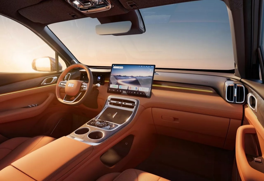 อุปกรณ์ภายในยังคงจัดเต็มตามสไตล์ Geely ไม่ว่าจะเป็นหลังคากระจกพาโนรามา หน้าจอ Infotainment ขนาดใหญ่ หน้าจอแสดงผล Full digital รวมถึงแท่นชาร์จโทรศัพท์ไร้สายกำลังสูงสุด 50 วัตต์ และระบบเครื่องเสียง Flyme Sound จำนวน 23 ลำโพง ที่พัฒนาและปรับจูนโดยแบรนด์เอง พร้อมไฟ Ambient ตกแต่งภายในห้องโดยสารที่ปรับแต่งเพิ่มเติมได้