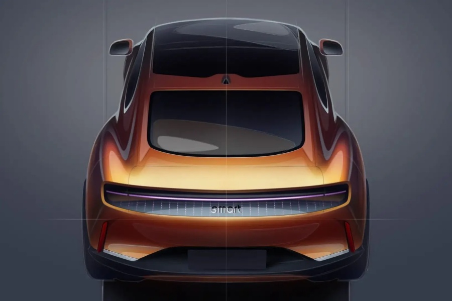 รายละเอียดตัวถังยังเน้นพื้นผิวเรียบตึงตามแนวด้านข้าง ไฟหน้า LED ดีไซน์ดุดันเชื่อมต่อชิ้นส่วนกระจังหน้าและไฟท้าย LED แนวยาวเต็มความกว้างด้านหลัง ตัวรถมีความยาวถึง 4,906 มม. พร้อมฐานล้อยาว 2,926 มม. ซึ่งถือว่ายาวที่สุดในประวัติศาสตร์ของ Smart และน่าจะช่วยเพิ่มพื้นที่ห้องโดยสารได้อย่างชัดเจน