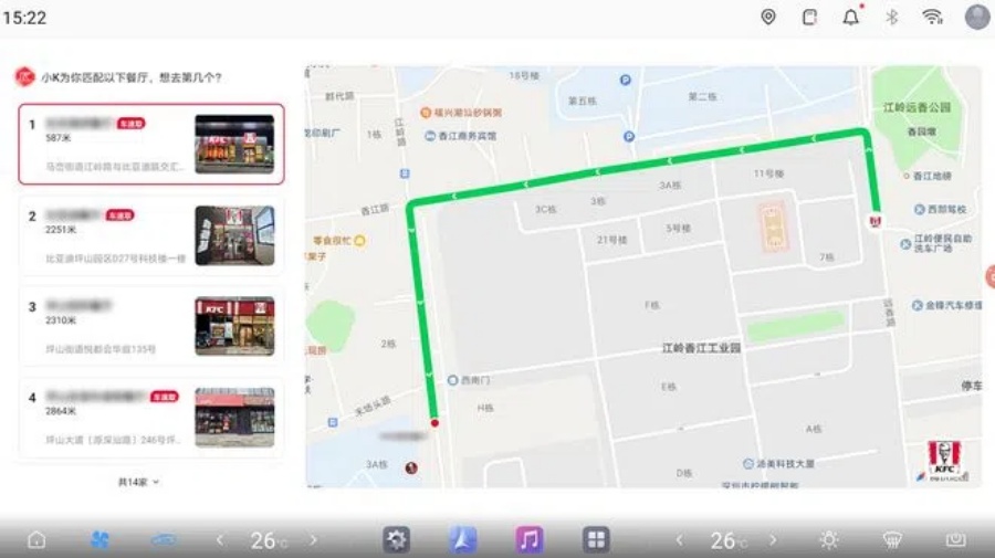 ระบบ Infotainment ภายในรถยังสามารถเชื่อมต่อกับเส้นทางการขับขี่ โดยเมื่อเจ้าของรถขับรถเข้าใกล้สาขาของ KFC ระบบจะเตือนให้ไปรับอาหารโดยอัตโนมัติ