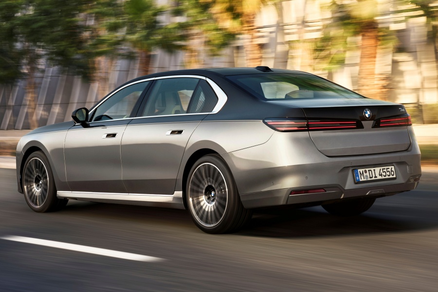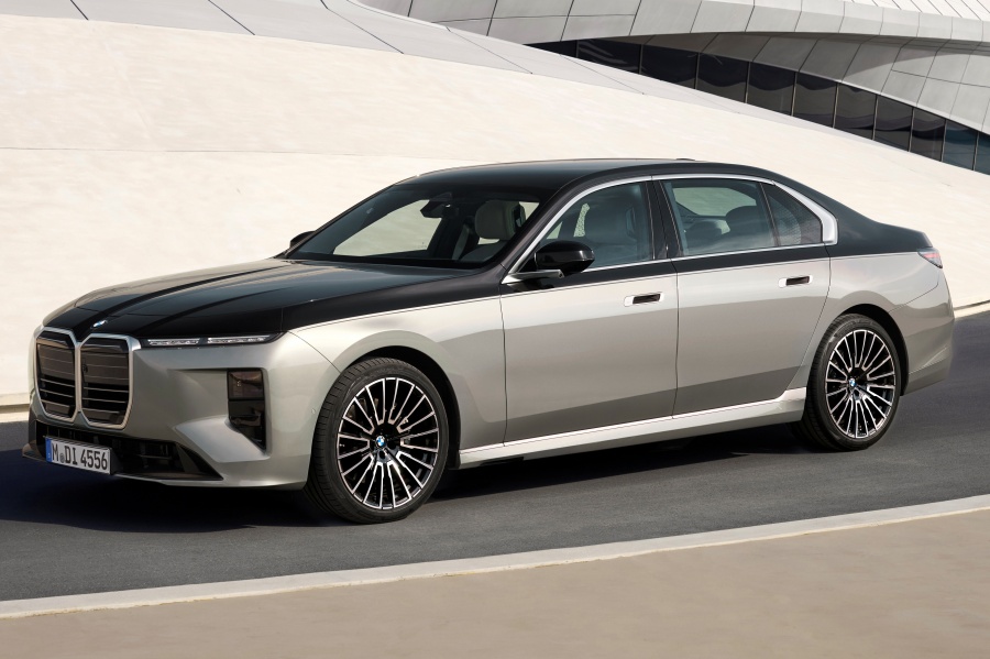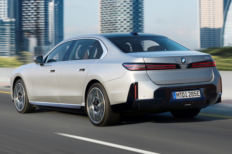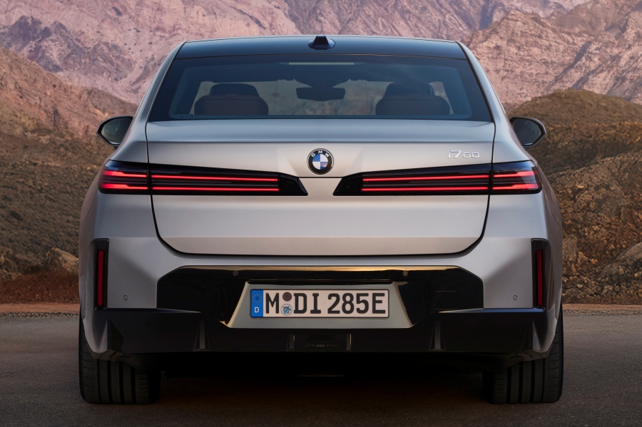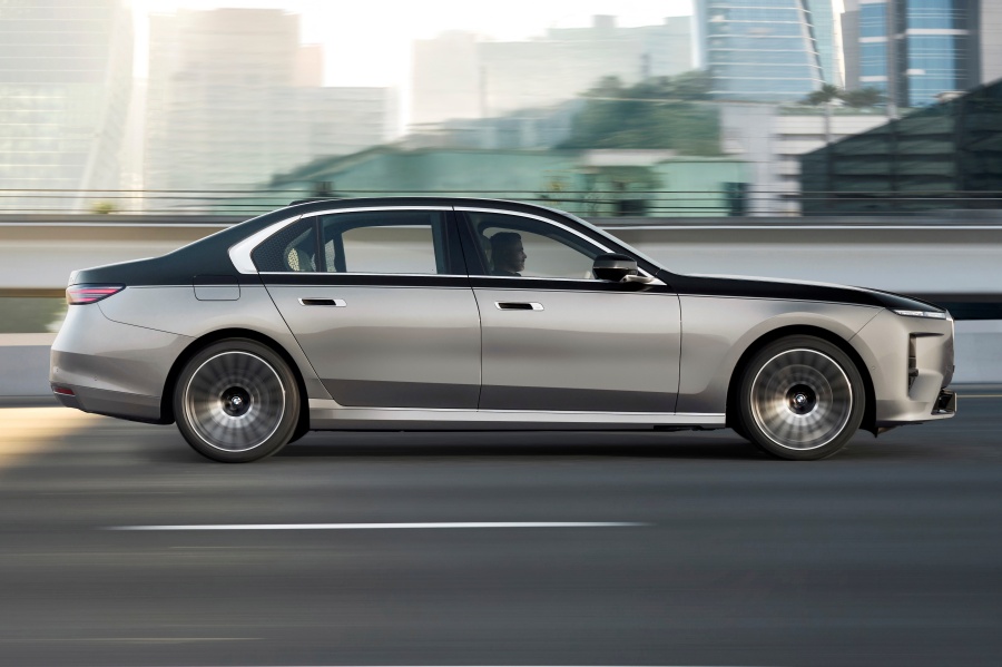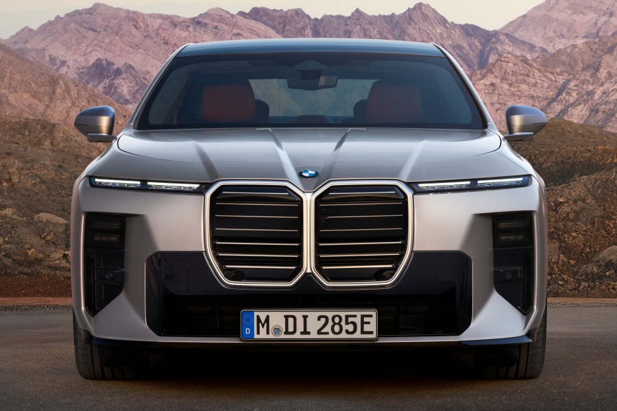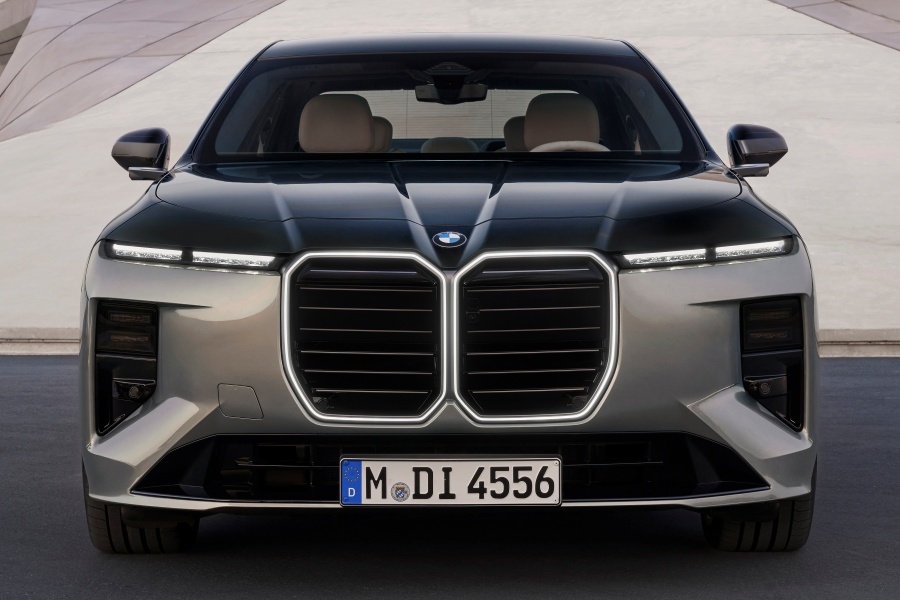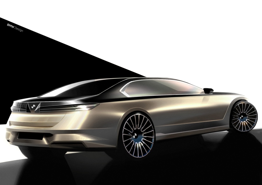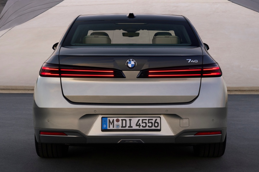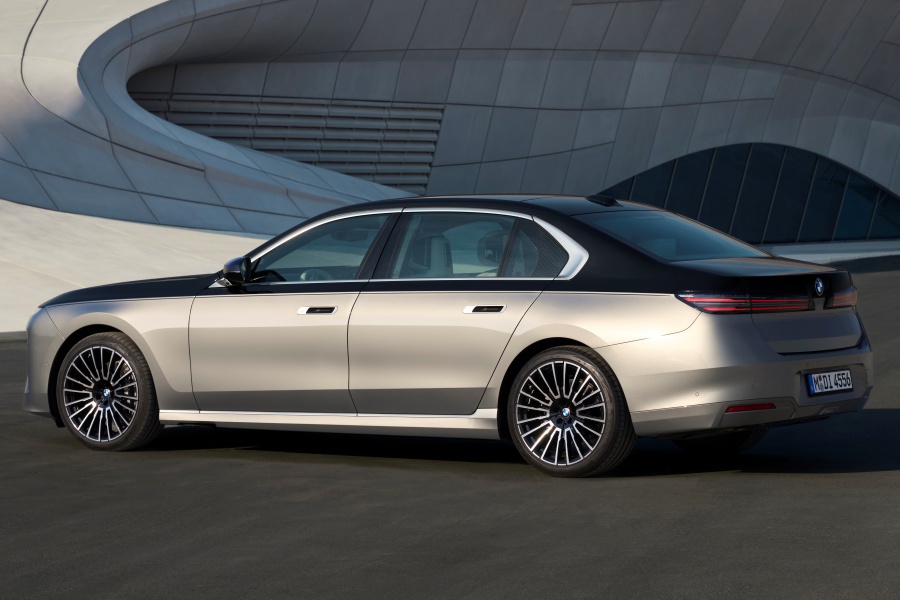 งานออกแบบภายนอกเน้นแนวคิด Monolithic Surface ที่ลดทอนเส้นสายให้เรียบง่ายมากยิ่งขึ้น แต่ยังคงความทรงพลังด้วยสัดส่วนตัวถังขนาดใหญ่ กระจังหน้า BMW Kidney Iconic Glow แบบเรืองแสง และไฟหน้า Crystal ดีไซน์บางเฉียบ สร้างเอกลักษณ์ใหม่ของรถหรูยุคไฟฟ้า พร้อมลูกเล่น Dynamic Light Carpet และระบบ Welcome / Goodbye Sequence ที่เชื่อมประสบการณ์ผู้ใช้ตั้งแต่ก่อนเข้าสู่ตัวรถ ด้านข้างเน้นผิวตัวถังเรียบเนียนตลอดแนว เสริมด้วยล้ออัลลอยขนาด 20–22 นิ้ว (มีล้ออัลลอยขนาด 22 นิ้วติดตั้งเป็นอุปกรณ์มาตรฐานครั้งแรกจากโรงงาน) ขณะที่ด้านท้ายติดตั้งไฟดีไซน์ใหม่ให้ดูทันสมัยขึ้น ช่วยเพิ่มความโดดเด่นได้มากกว่ารุ่นก้อนหน้า
