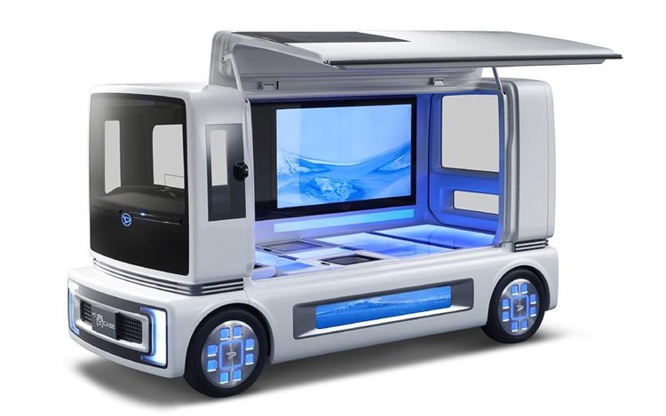 และ Daihatsu FC Sho Case รถตู้เล็ก Fuel Cell ทรงแปลก ใช้เทคโนโลยีไร้โลหะหายากอันทำให้ต้นทุนรถยนต์ Fuel Cell สูงโดยไม่จำเป็นและยังช่วยขยายระยะทางวิ่งให้นานขึ้น แพลทฟอร์มใหม่สามารถบรรจุกล่อง Stack พลังงานได้อย่างมิดชิดไม่รบกวนเนื้อที่ห้องโดยสาร