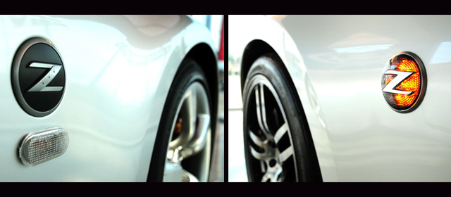 นอกจากนี้ การออกแบบในบางส่วนคือการเก็บความเรียบร้อยของรายละเอียดปลีกย่อยบนตัวถัง ซึ่งส่วนที่ผมถูกใจมากที่สุดส่วนหนึ่งก็คือไฟเลี้ยวแก้มหน้า ซึ่งตอนแรกผมนึกว่ามันเป็นเพียงแค่โลโก้ Z ธรรมดาๆ อย่างสมัยรุ่น 350Z ที่มีโลโก้พะไว้ตรงแก้มข้าง อยู่ข้างบนไฟเลี้ยวอีกที