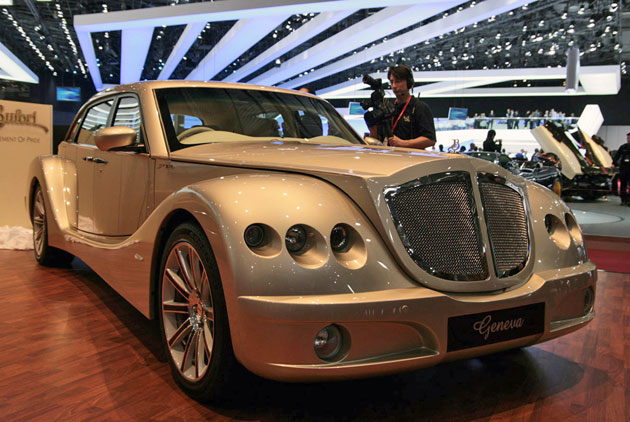 รถหน้าตาแปลกนี้เป็นค่ายรถจากออสเตรเลียครับ มันมาในชื่อว่า Bufori Geneva สมชื่อรถคันนี้จริง ๆ เพราะเปิดตัวใน geneva ครั้งแรกมาในมาดรถซีดานหรูขนาดยักษ์เทียบรัศมีกับ Maybach ยัดเครื่องยนต์จาก Chrysler 6.1 ลิตร แรงสะใจเกือบ 600 แรงม้า น่าจะเหมาะกับเศรษฐีรสนิยมลองของแปลกนะครับ