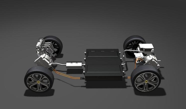 ขุมพลังของรถ Hybrid คันนี้เป็นชนิด Series หรือเรียกอีกแบบหนึ่งก็คือรถไฟฟ้าที่สามารถขยายระยะทางได้ แต่ในเมื่อ Lotus ต้องการเรียกรถของตนว่า Hybrid เราก็ไม่ขัดศรัทธาครับ ขุมพลังของมันประกอบไปด้วยมอเตอร์ไฟฟ้าเหนือเพลาล้อหลังและติดตั้งเครื่องยนต์สันดาปภายใน 3 สูบ 1.2 ลิตรรองรับ Flex Fuel ไว้ด้านหลัง ส่วนแบตเตอรี่ก็ถูกติดตั้งบริเวณห้องโดยสาร