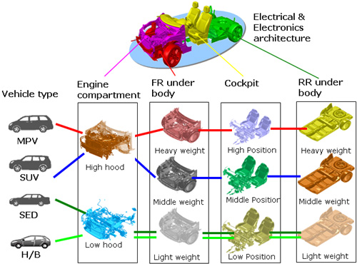 แนวคิดงานพื้นฐานทางวิศวกรรมในลักษณะการจัดชุด (Module) ที่สามารถดัดแปลงให้เข้ากับรถยนต์ได้ทุกรุ่น