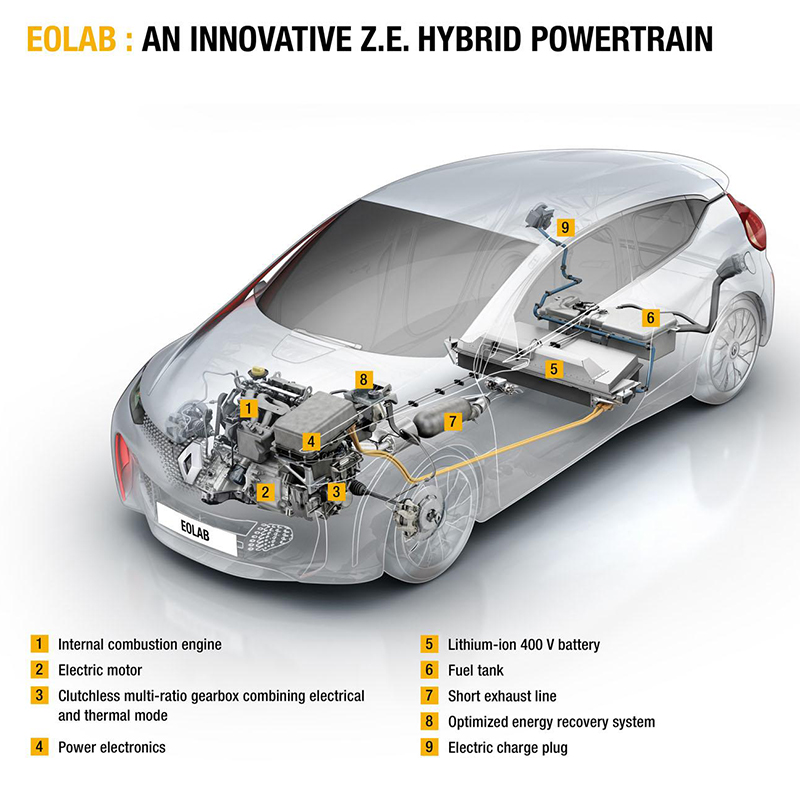 แม้ Renault จะกล่าวว่าตัวรถ Eolab Concept จะไม่ได้นำไปผลิตจริงแน่ๆ แต่หลากเทคโนโลยีที่ Renault ทุ่มงบ