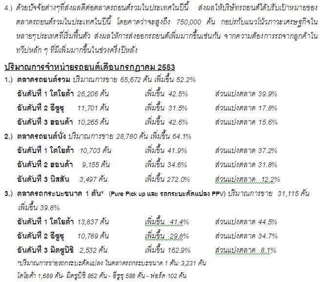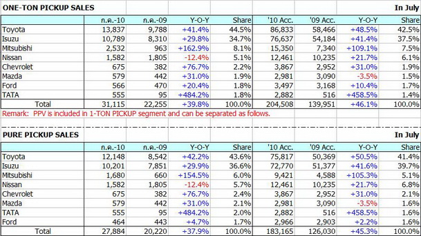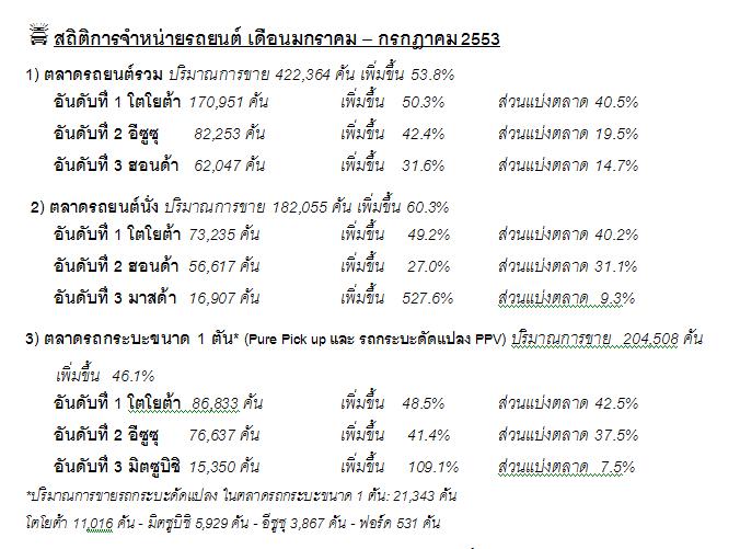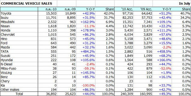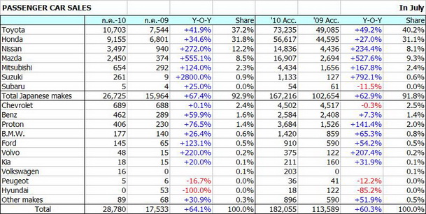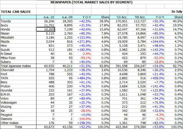 Toyota ประกาศยอดขายรถยนต์ในไทย เดือนกรกฎาคม 2010