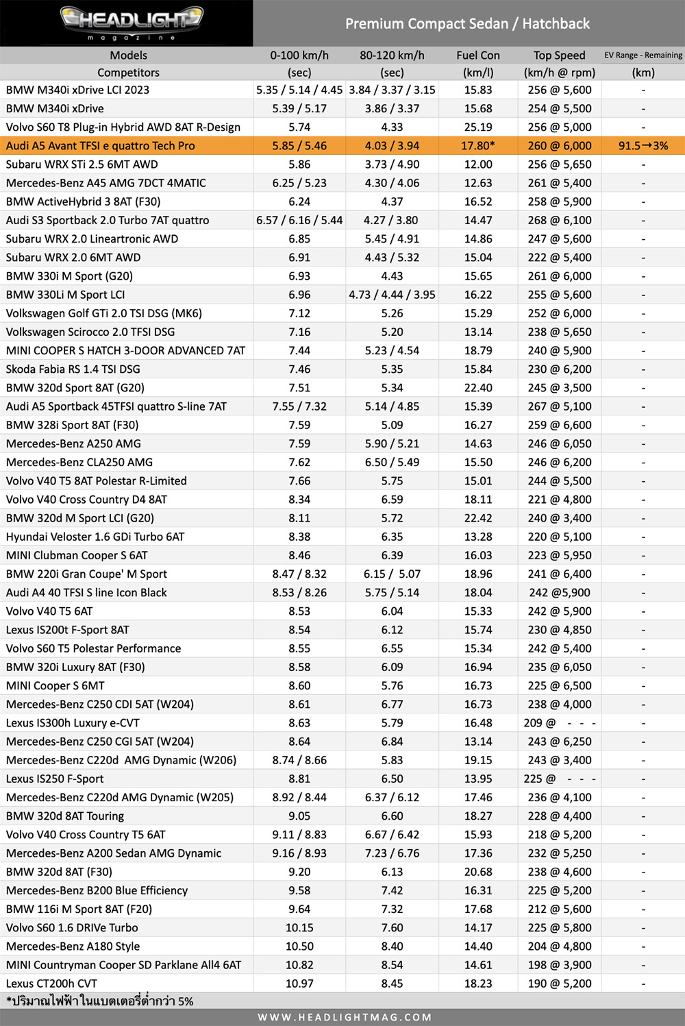 ผลทดสอบ อัตราเร่ง อัตราสิ้นเปลือง Audi A5 Avant TFSI e quattro Tech Pro